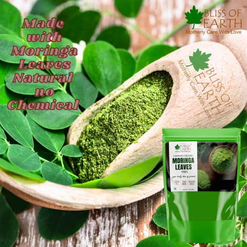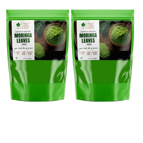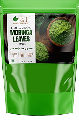 This bag of sustainably grown powder of organic moringa leaves is an excellent source of iron calcium and fiber moringa is one of the most nutrient-dense plant of the Earth. Popularly known as "tree of life" many find it beneficial for detoxification and to manage post-workout inflammation. Moringa contains 90+ nutrients and amino acids which are naturally occurring making them bioavailable as they work in unity within human body. Bliss of Earth Organic Moringa is farmed with care in India where leaves are handpicked air dried and gently milled the same day to preserve all the precious nutrients. We also preserve all of the fiber from the leaves which promotes digestion and even supports your overall gut health by acting as a probiotic. Suggested Usage: Mix 1 tbs (3 grams) in a glass of lukewarm water and and drink on empty stomach in the morning once or twice a day between meals. Enjoy mixed in water juices smoothies tea or sprinkled food.