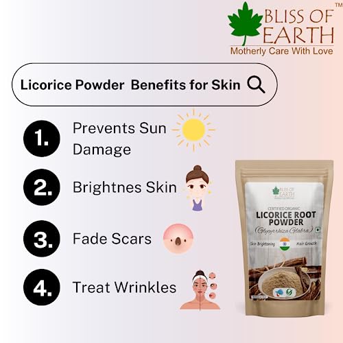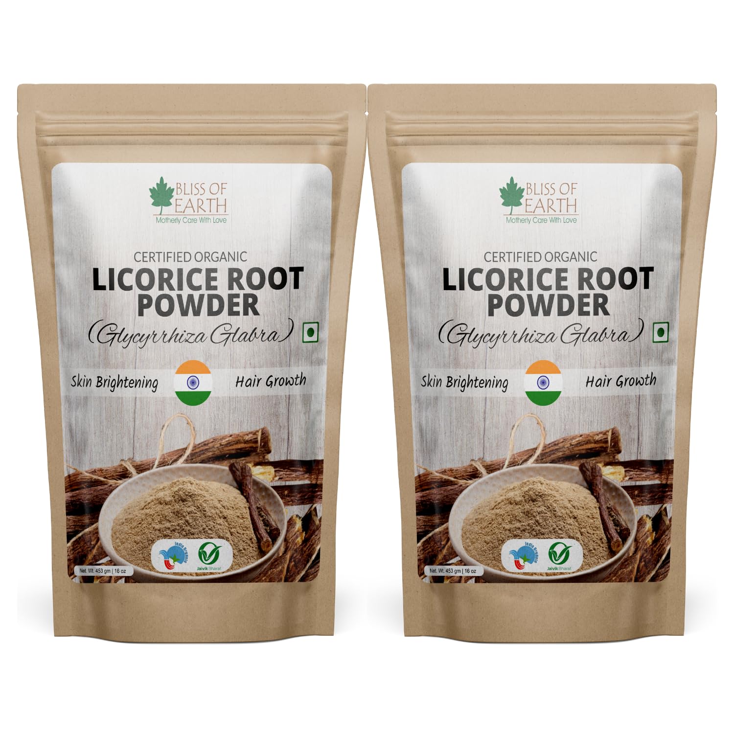 Bliss of Earth Organic Licorice Root Powder For Eating Mulethi Powder Organic For Skin Whitening Hair & face 453 GM Pack Of 2