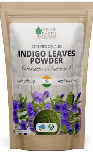 Bliss of Earth Indigo powder is certified organic and is made from organic indigo leaves. Indigo powder is used to get deep black or dark brown color. In case of gray white or blonde hair you have to follow the two steps process. First step is to apply Bliss of Earth Organic Henna powder. Second apply the Indigo powder after washing out the Henna powder. For normal hair mix Henna & Indigo powder to get shiny black color. Direction to use: 1. Mix the indigo powder with warm water in a glass bowl and make a thick spreadable paste. 2. Cover the paste with a plastic wrap for 15-20 minutes. 3. Apply Bliss of Earth Organic coconut oil in open areas like ears neck and hair line to prevent the coloring. 4. Apply the paste on your hair with a brush. 5. Once the hair are fully covered with the Indigo paste wear a shower cap and wait for 2-3 hours. Wait for 5-6 hours if you have mixed both Henna and Indigo powders. 7. Rinse your hair with runny water wihout using shampoo. 8. Let your hair dry. Cautions: For external use only. Do not apply on skin or near eyes. Indigo powder is best used in combination with Henna or after coloring your hair with Henna.