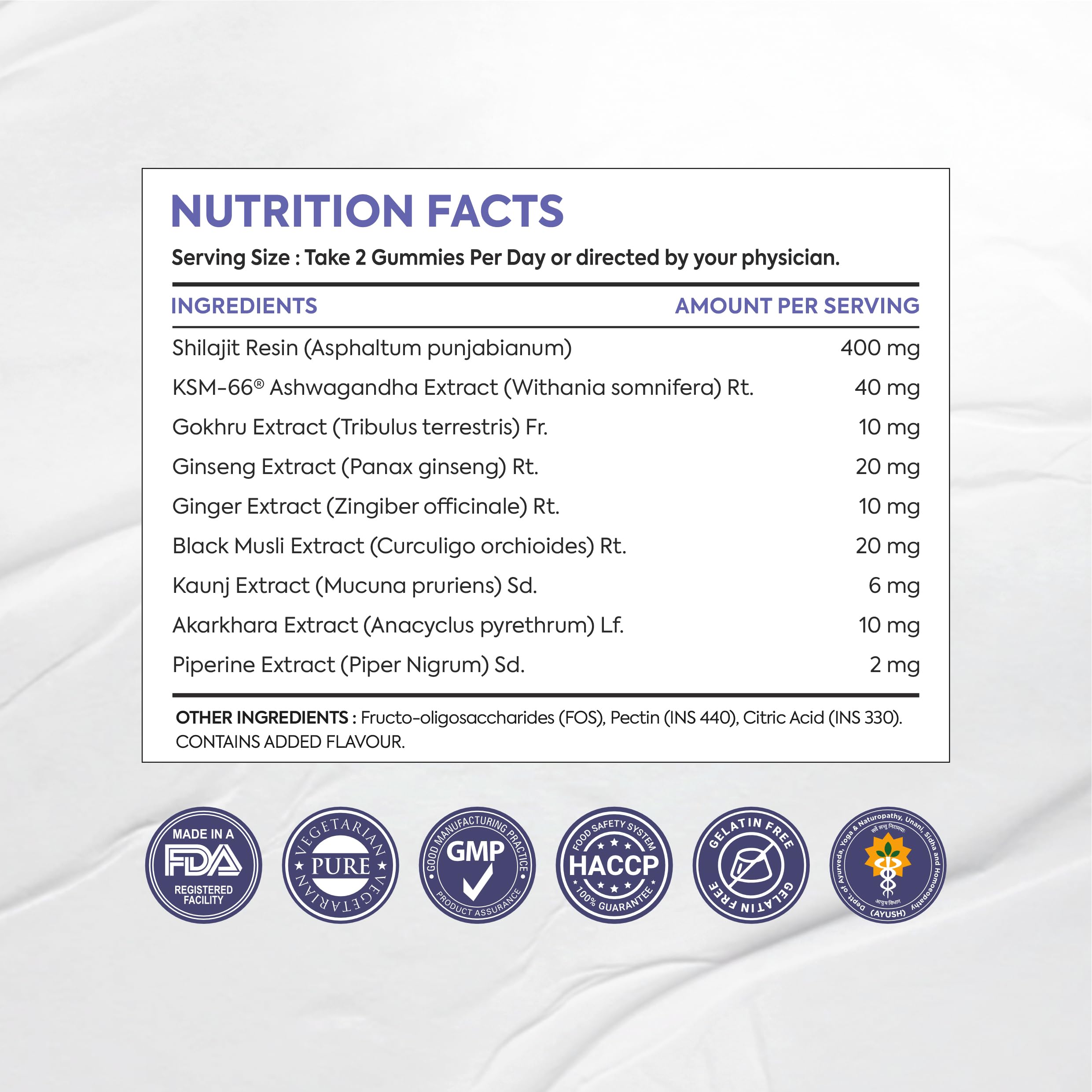 Support Physical Performance: Formulated with Gokhru Extract Ginseng and Ginger these gummies help promote endurance strength and physical performance. Ideal for those seeking to enhance their workout routines or daily physical activities.