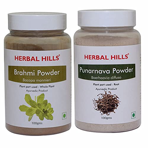 Herbal Hills Brahmi Powder and Punarnava Powder - 100 gms each for liver kidney care and memory supp