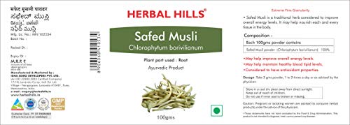 Herbal Hills Brahmi Powder and Safed Musli powder - 100 gms powder each for memory support and mens health