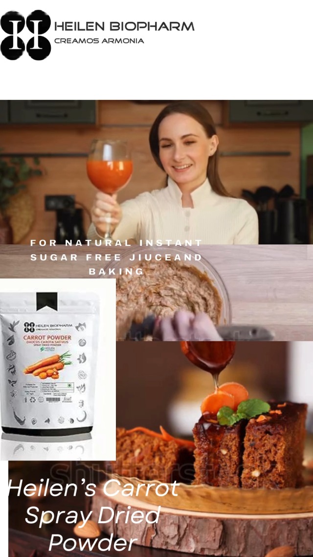 Heilen Biopharm's Carrot Spray dried vegetable powder is a good flavoring agent. Use to make Salad green juice stuffed parathas It comes in standy zip lock pouch easy to use & store.