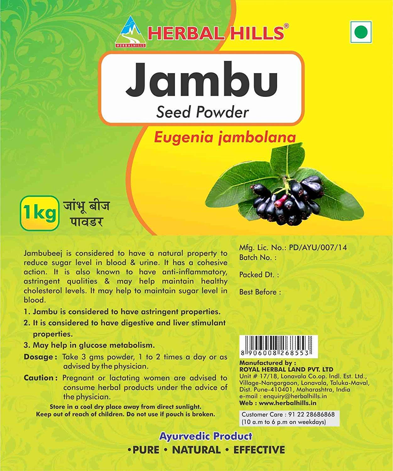 Herbal Hills Jambu Beej Powder 1 Kg (Single Pack)