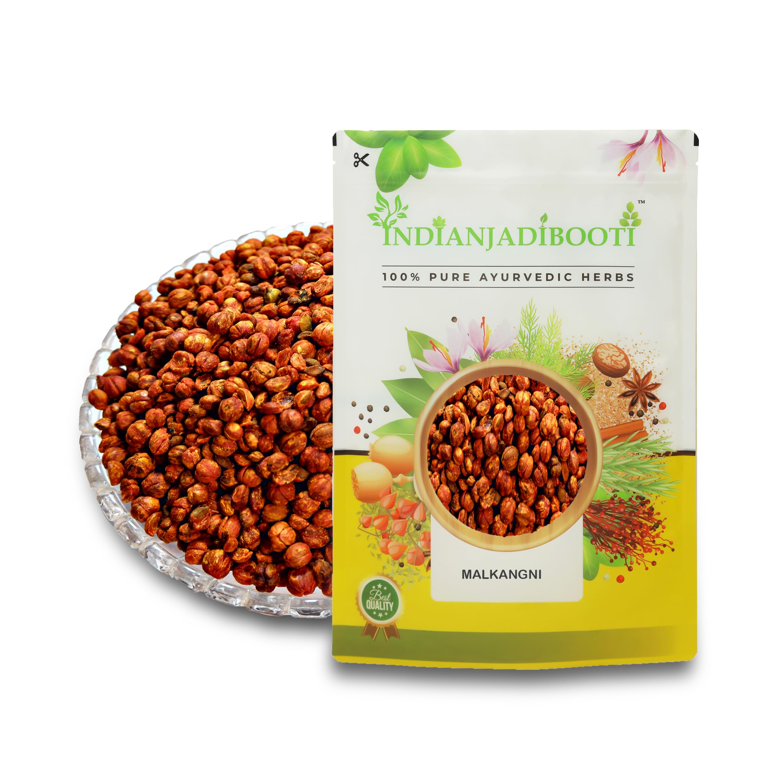 Malkangani is an effective remedy to manage stress or anxiety. According to Ayurveda stress is due to an aggravated Vata. Malkangani has Vata balancing property and helps reduce stress. It also has Medhya (improves intelligence) property which calms and relaxes the mind.