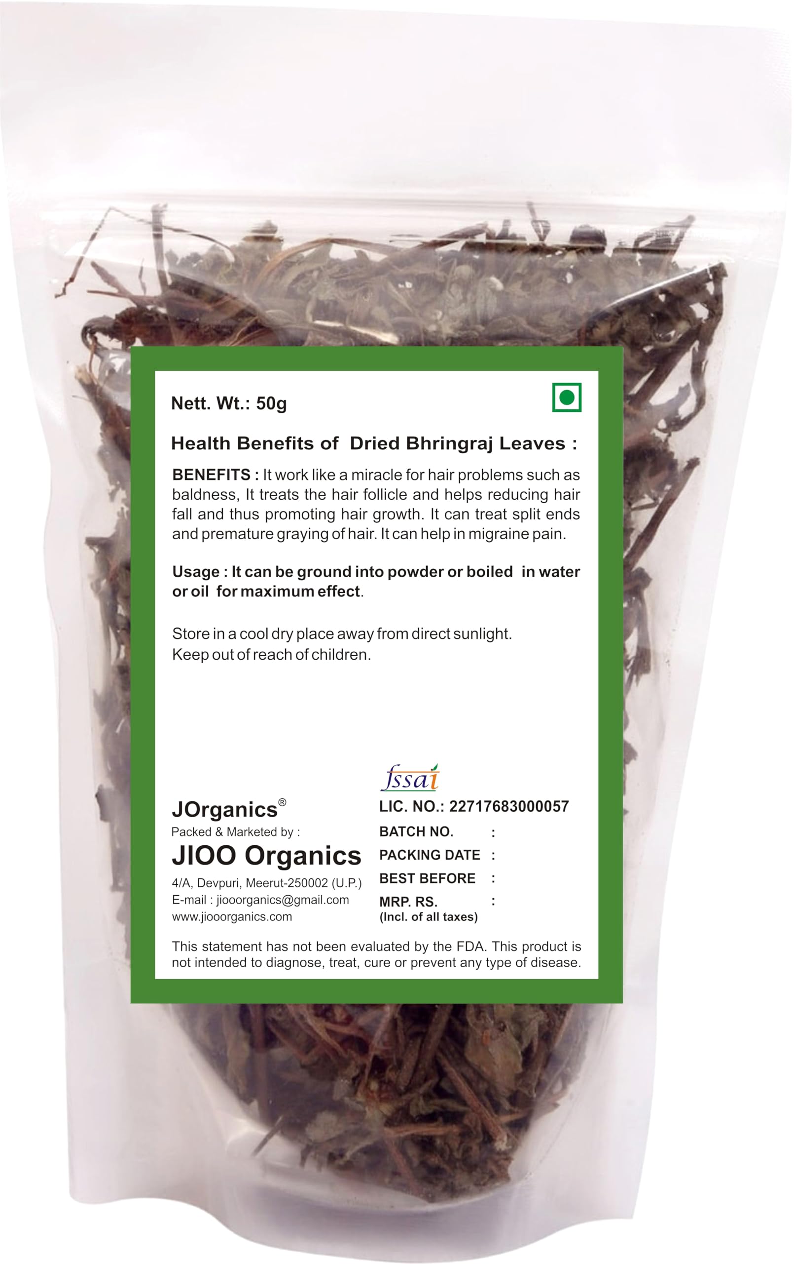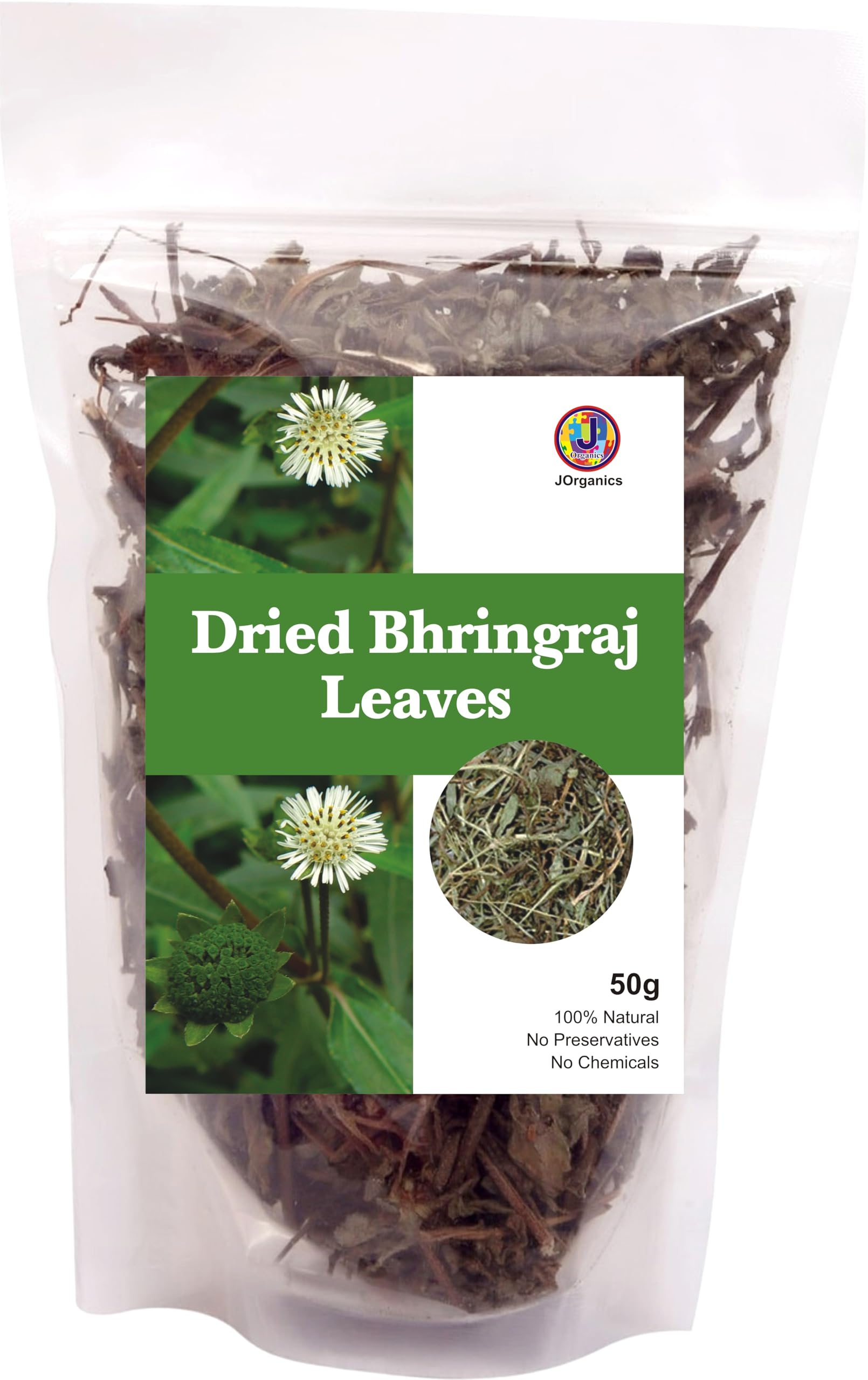 JOrganics Bhringraj Dry Leaves Raw Bringraj Leaf Bhrangraj Bhangra Bhringraj For Hair Regrowth Scalp Treatment Dry Frizzy Curly Straight Wavy Hair Type (50 Grams)