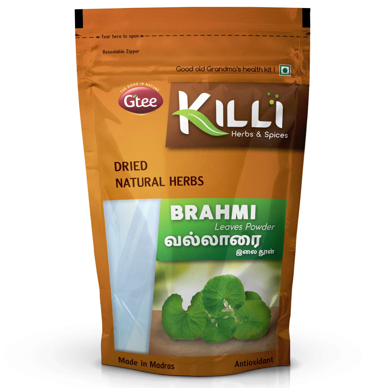 KILLI BRAHMI LEAVES POWDERHEALTH BENEFITSBrahmi is a popular traditional herb used in ayurveda and siddha for ages. It contain powerful antioxidants and is commonly used for its benefits. It is also called as gotu kola or vallaraiHOW TO MAKEKilli Brahmi leaves can be used to make thuvaiyal chutney rice and dosai.KILLI HERBS & SPICESKILLI having its special care and scientific approach in every stop of processing of herbs to retain the active principle taste and aroma explores the value of traditional herbs with uncompromising quality and taste to customers. We believe that the traditional wisdom is the wealth of our Nation. KILLI's unique herbal combinations offers its customers the best healthy solutions. KILLI is a Registered Trademark of Gtee