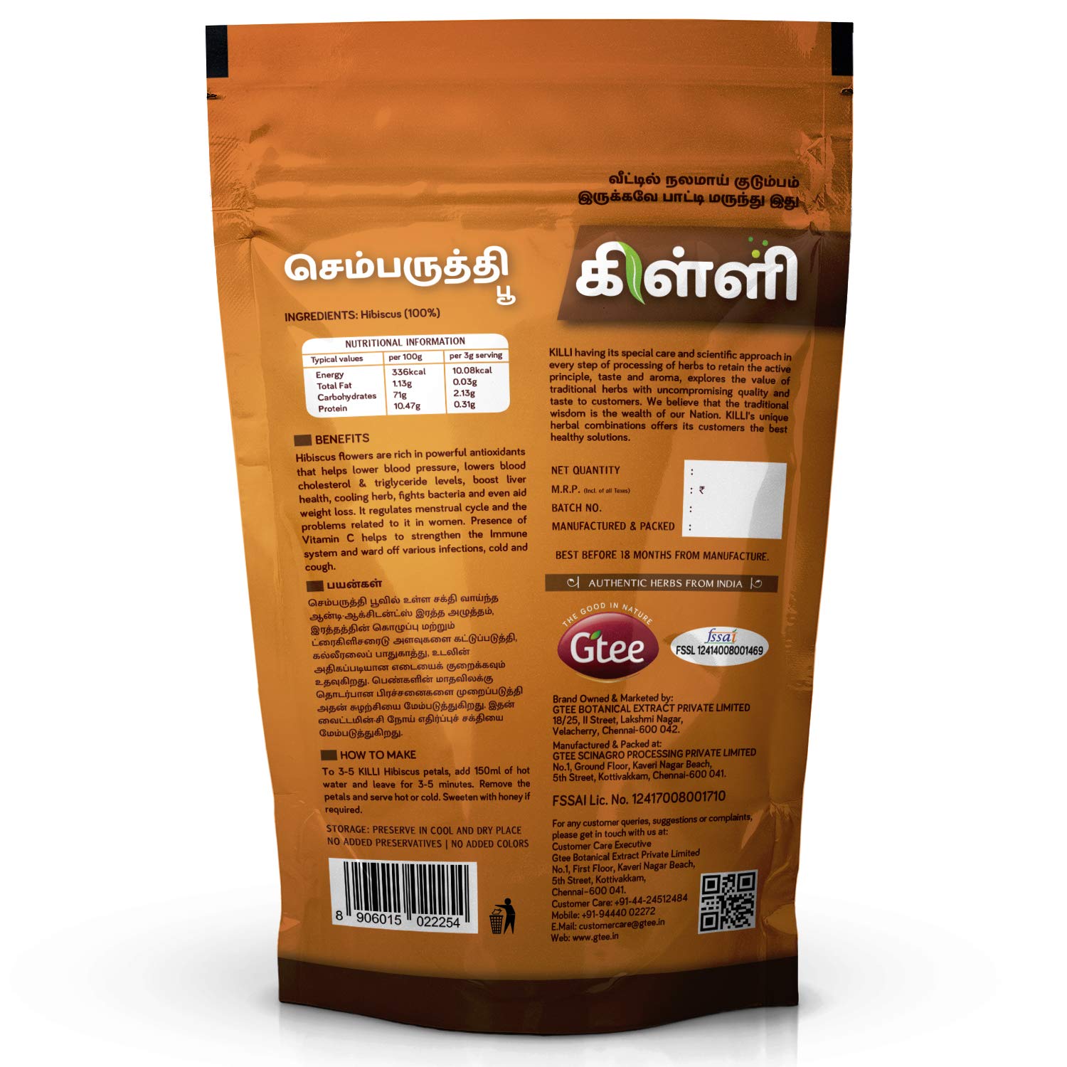 KILLI HIBISCUS FLOWERHEALTH BENEFITSHibiscus flowers are rich in powerful antioxidants that helps lower blood pressure lowers blood cholesterol & triglyceride levels cooling herb and even aids weight loss. It regulates menstrual cycle and the problems related to it in women. Presence of Vitamin C helps to strengthen the Immune system.HOW TO MAKETo 3-5 KILLI Hibiscus petals add 150ml of hot water and leave for 3-5 minutes. Remove the petals and serve hot or cold. Sweeten with honey if required.KILLI HERBS & SPICESKILLI having its special care and scientific approach in every stop of processing of herbs to retain the active principle taste and aroma explores the value of traditional herbs with uncompromising quality and taste to customers. We believe that the traditional wisdom is the wealth of our Nation. KILLI's unique herbal combinations offers its customers the best healthy solutions. KILLI is a Registered Trademark of Gtee