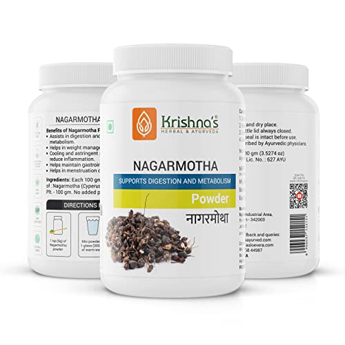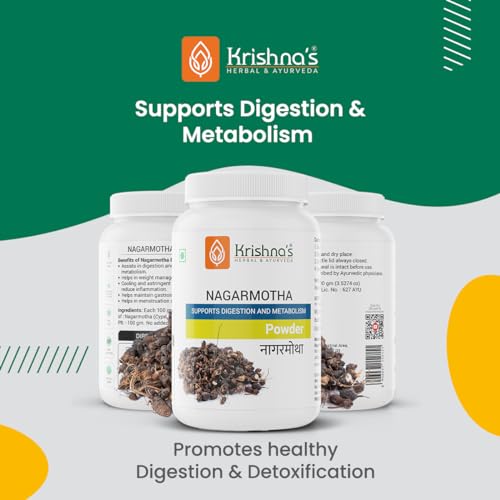 Krishna's Nagarmotha Powder is out of best quality and authentic Ayurvedic herbs available in India which is specially selected and manually graded to give best quality and efficacy. Nagarmotha / Musta powder may support healthy digestion womens wellness and support Immunity. Made from the roots of Cyperus rotundus. It has digestive carminative anti-inflammatory cholesterol lowering & uterine health properties.