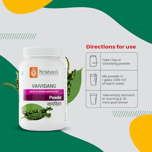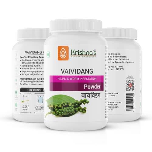 Krishnas Vaividang Powder is the best herb used for worm infestation. It provides good health and energy to the body. Because of its laxative property is helpful in constipation. Improve skin complexion and skin problems. This is mostly used as Germicide in homemade medicines.