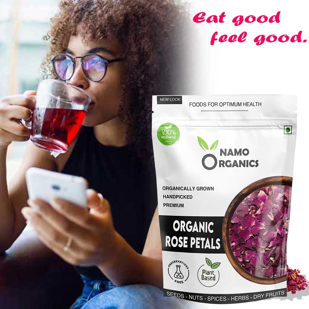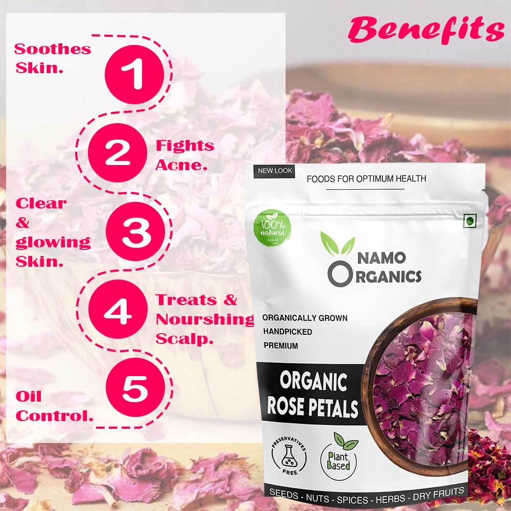 Namo Organics - Sun Dried Rose Petals (Fresh Crop) - Dry Rosa Gallica - 100% Edible for Food - 100 Gm (Dried Rose Petals, 100 Gm)