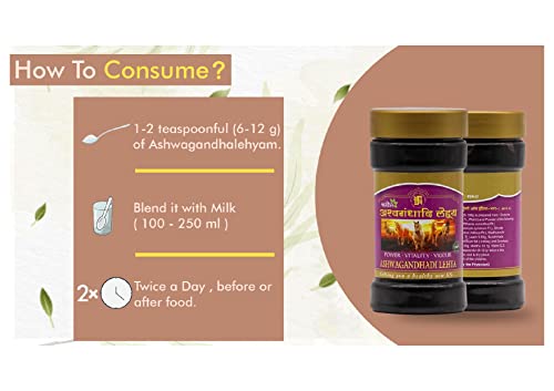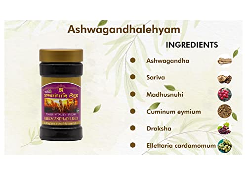Navjeewan ASHWAGANDHADI LEHYA is a Classical Poly-herbal semi-solid Lehyan type formulation traditionally prepared with the famous Ayurveda Herb - "The Ashwagandha" as its Chief ingredient which is 100% Herbal and Natural | No added Fragrance or Colour | No Mineral Oil or Petroleum by-products used.