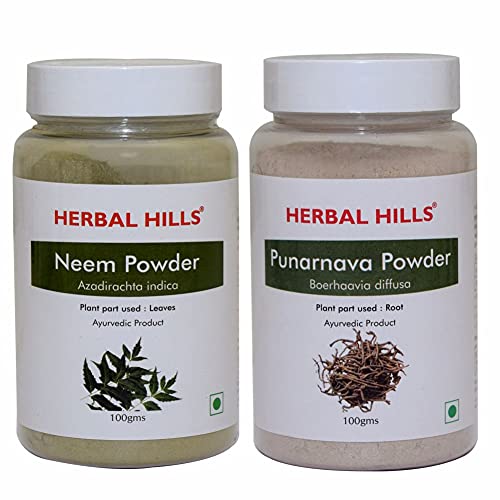 Herbal Hills Neem patra powder and Punarnava Powder - 100 gms each for liver kidney care blood purifier and sugar control