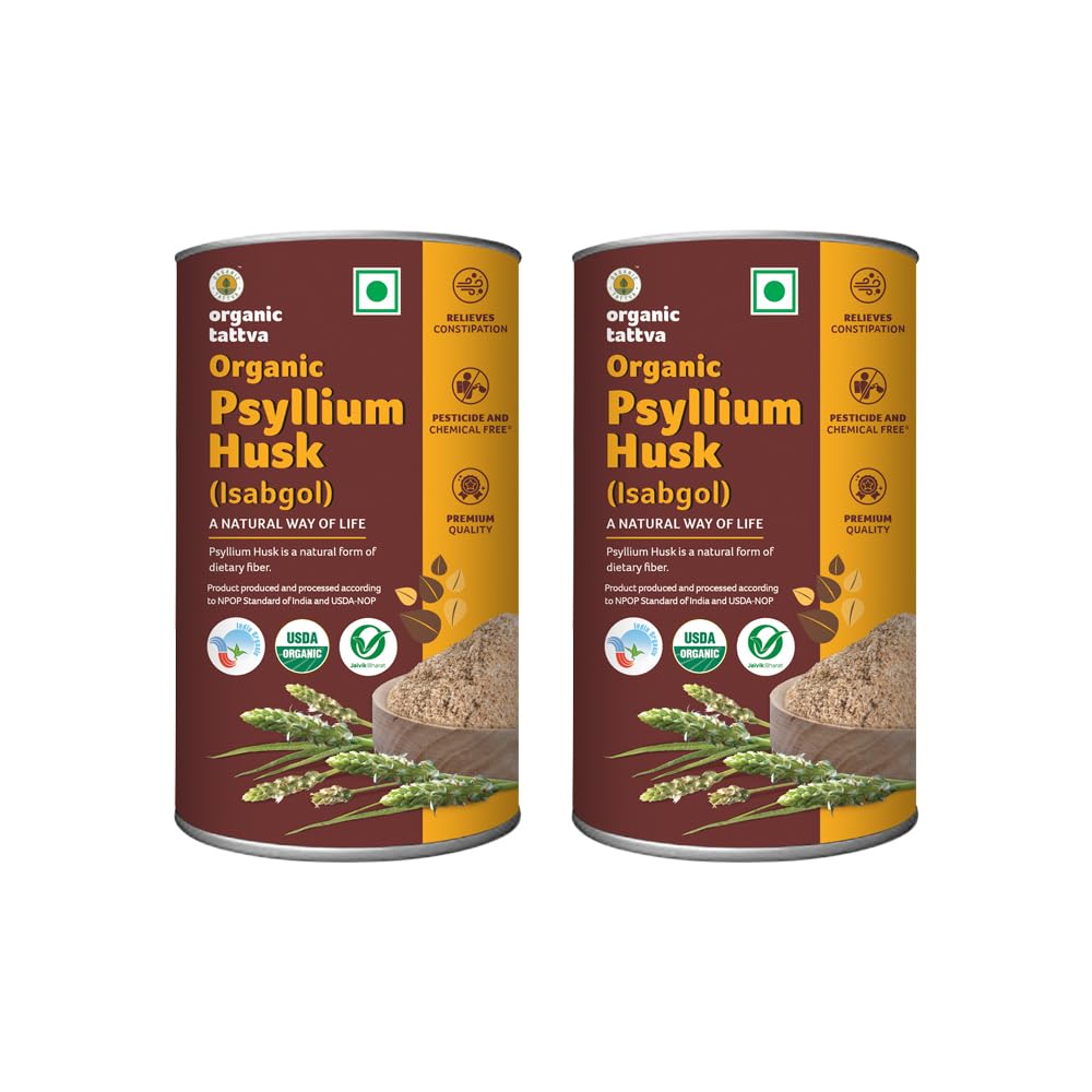 Organic Tattva Psyllium husk Issabgol is a great laxative so helps in constipation ease and boosts the bowel movement and helps relieve bloating which is common problem where your stomach swells up forming gas which doesn't allow the digestive enzymes to work properly. It's helpful in maintaining healthy cholesterol levels and help healthy weight. Organic Tattva Psyllium husk is also helpful in maintaining recommended blood sugar levels by maintaining a healthy glycemic balance. Organic Psyllium Husk (Issabgol) is always considered as an old age remedy as it not only helpful in healthy bowel movements relieve constipation digestive distress but also helps to flush toxins from the digestive tract which indirectly helps in improved digestion and weight loss. Issabgol is known as Plantago Ovata seeds which undergo milling thorough sieving and winnowing to produce this herbal product. Regular intake of Organic Tattva Isabgol may help strengthen your digestive system and strengthen the rectal muscles relieve flatulence and give your stomach a much-needed cleanse. Isabgol is a great source of fiber. Regular consumption of Organic Tattva Isabgol Psyllium Husk helps the secretion of cholecystokinin a hormone that immediately pokes the brain to signal a feeling of fullness in your stomach. This process keeps you satiated and helps control mid-meal cravings. It is also known to help release excess urea of the body and combat acidity and acid reflux. Organic Psyllium Husk (Isabgol) is safe for consumption for all adults.