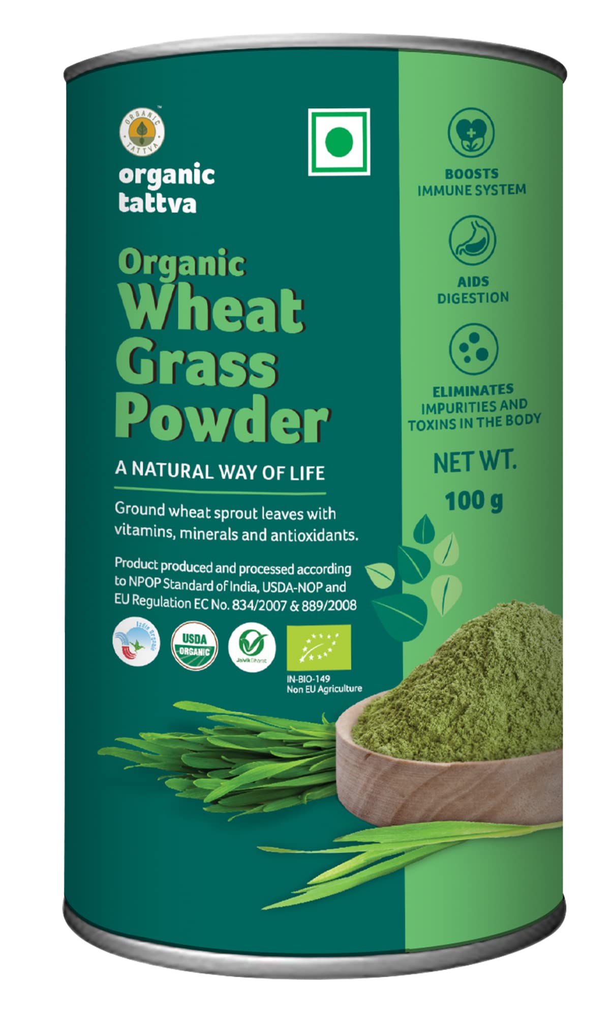 Organic Wheat Grass Powder 100 Gram Tin