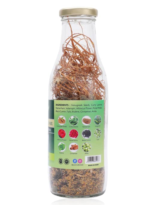 • MADE WITH THE GOODNESS OF 11 MIRACULOUS HERBS : Our Jadi Buti Mix has been made with the goodness of 11 magical herbs – fenugreek seeds curry leaves ramacham valampiri hibiscus flower rose petals black cumin tulsi brahmi cinnamon and amla.