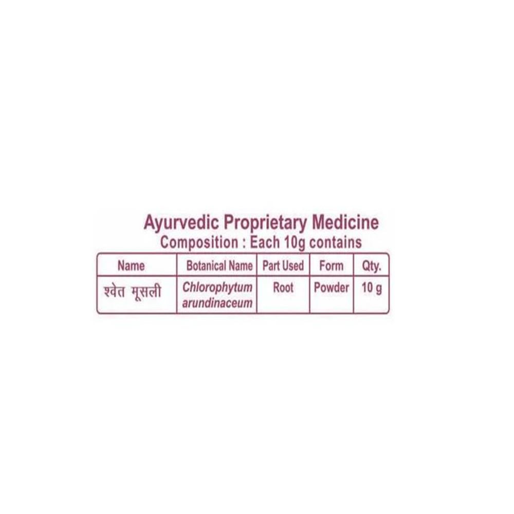 Key IngredientsBenefitsProduct Form: PowderHow to use:Take 1 tablespoon / 5g Patanjali Ayurveda Swet Mushli Churna in the day with warm milk or as suggested by the expert.About Patanjali:Patanjali Ayurved Limited is a leading producer and exporter of herbal and natural products, including health supplements, cosmetics, food, processed food, beverages, personal and home care products. Patanjali Ayurved Ltd. was established in 2006 with the thought of rural and urban development and to create a healthy society through Yoga and Ayurveda. Patanjali has a mission of making India an ideal place for the growth and development of Ayurveda and a model for the rest of the world. Patanjali Ayurved Ltd. has achieved a tremendous presence around the globe and throughout India in a minimal time since its inception. Today, the company products are available in many overseas markets, helping people move towards a more healthy and natural lifestyle.Legal Disclaimer: Statements regarding dietary supplements have not been evaluated by the FDA.Note: Product images are for illustrative purposes only. Images/packaging/ labels may