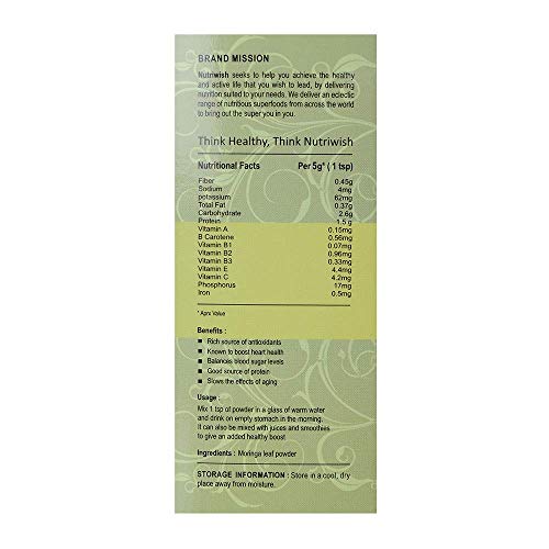 Nutriwish moringa powder is a powerful organic super food is the richest nutrient source energy booster and one of the best nutrient supplement for vegetarians. It helps in weight reduction and is rich in protein minerals and phytol-nutrients that keep your body healthy. Nutriwish seeks to help you achieve the healthy and active life that you wish to lead by delivering nutrition suited to your needs.