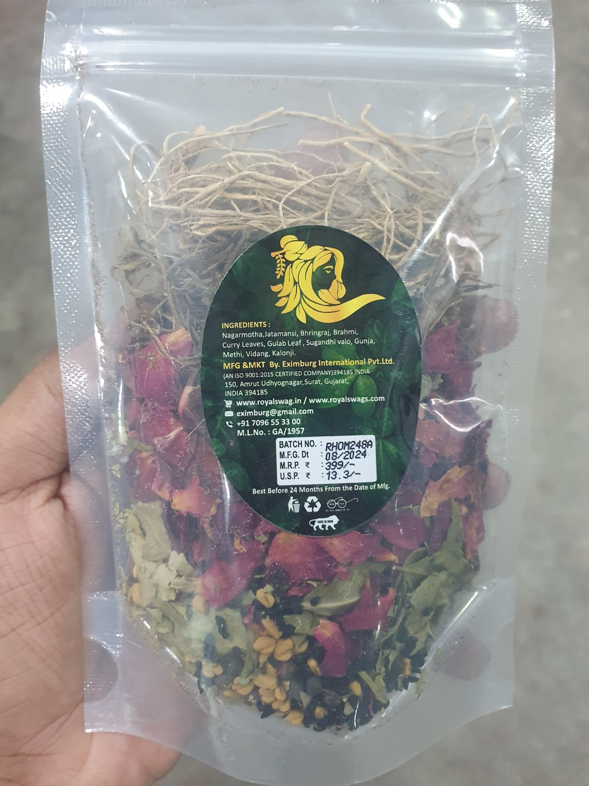 Our Herbal Hair Oil mix is a powerful blend of selected herbs including Sugandhi valo(vetiver) Rose petals Jasud flower(hibiscus flower) Senna leaves and Kesudo flower(Palash flower). It has been specially formulated for all type of hair. If applied for 2