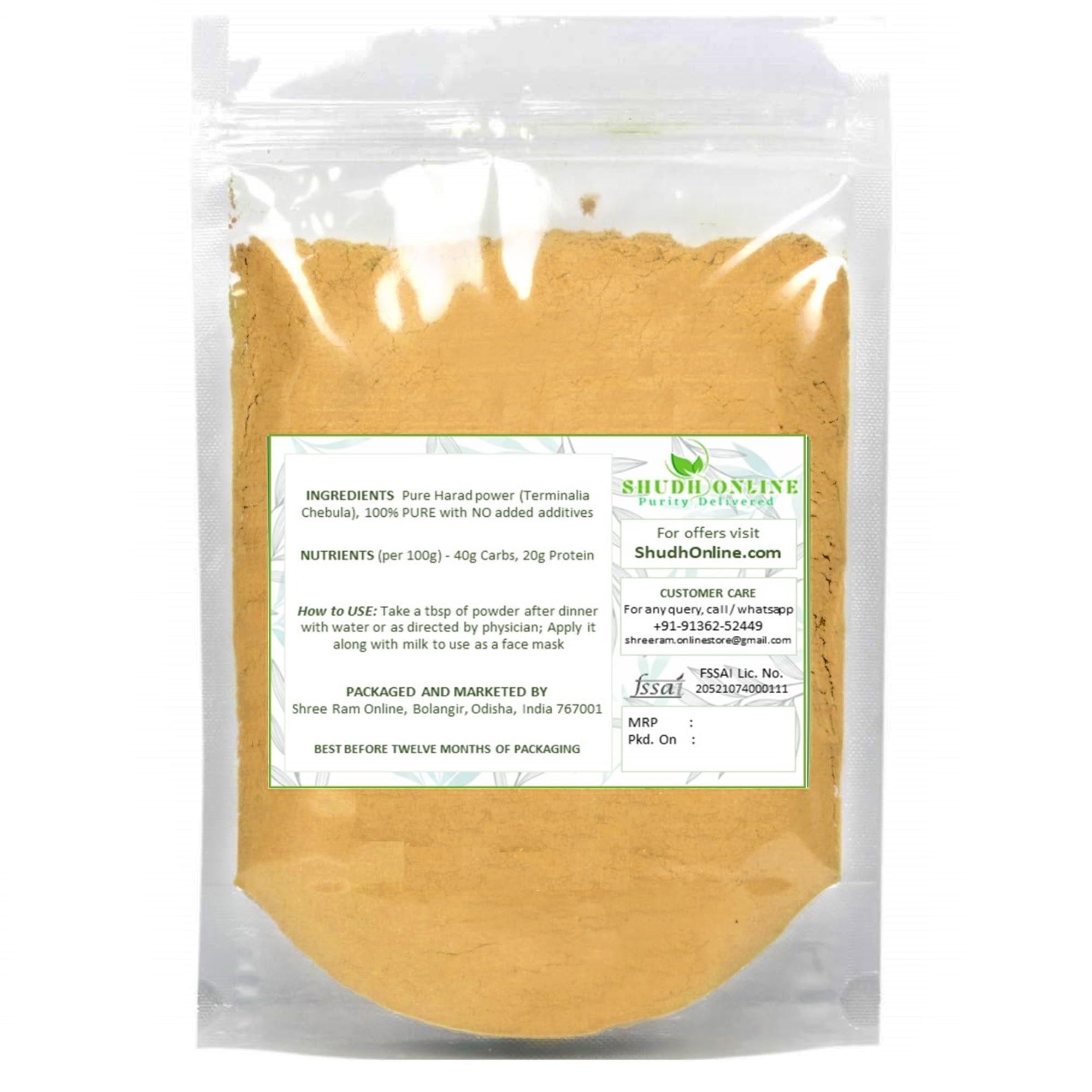 Shudh Online Harad powder Kadukkai powder for face Orgainic Badi Haritaki Churna Inknut Haralu (100 grams) Harde Seeds for Dark Circles Karakkaya Terminalia Chebula Karakaya for Cough Eating