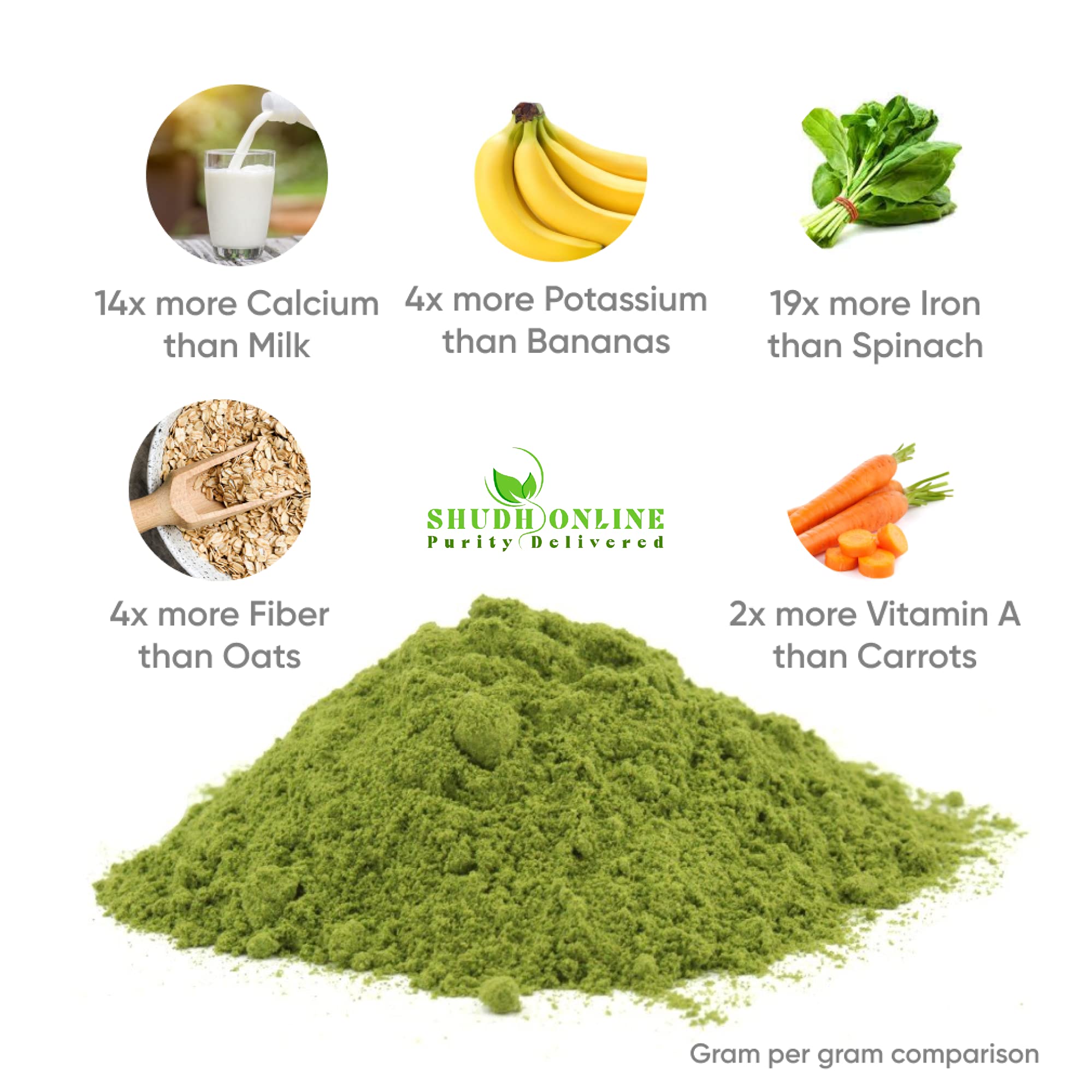 Shudh Online Moringa Leaves Powder Organic Murungai Leaf powder (100 Grams) Munagaku Drumstick Morigana Sahjan Muringa for Hair Growth Weight Loss Face Tea