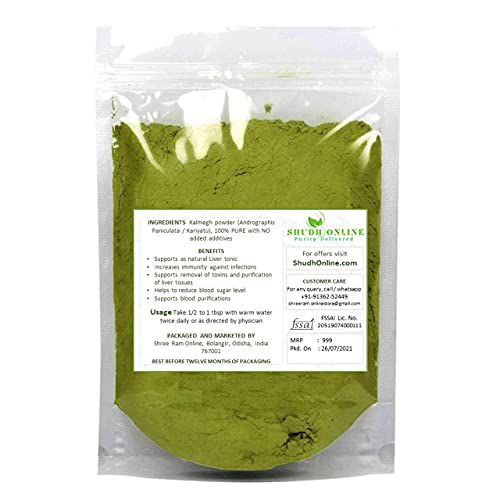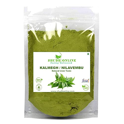 Shudh Online Kalmegh / Nilavembu / Kariyatu powder / King of Bitter (also known as Green chirayta Andrographis Paniculata) supports body. Kalmegh or Nilavembu kudineer is good for body. Other names of Kalmegh are Andrographis paniculata Hempedu Bumi Kariyatu Green chirayta Bhunimbh Kirayat Nilavembu Hara Chirayata. Kiriyatta Nilavepp Nilavemu Nilabevu Kalpa Bhunimba Kalmegha Kalpnath Mahatit Bhunimb Mahateet Nilaveppu Neelaveemu Kalmegh Bhuinimba Nelaberu. Shudh Online products are selectively sourced with great emphasis on purity and authenticity and are 100% natural ayurvedic products. We don't add any preservatives or additives in the product and using our product will get you closure to nature.