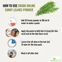 • HOW TO USE - SKIN CARE - Mix curry leaf powder & water to form a paste. Apply on the skin for 15-2 mins. Rinse with water. HAIR CARE - Mix karuveppilai powder & water to form a paste. Apply the paste from root to tip for 6 mins. Rinse with water