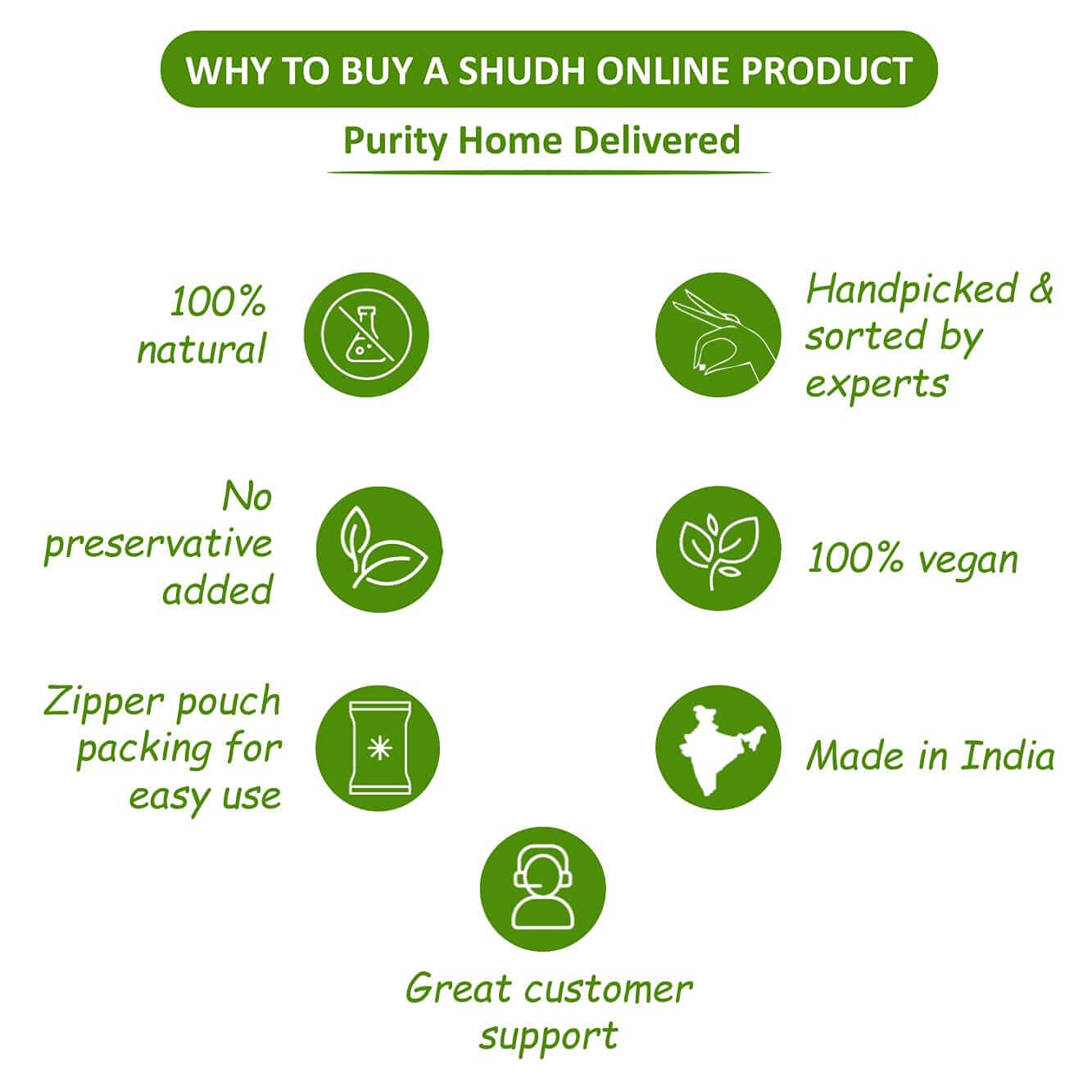 • 100% PURE and NATURAL - All Shudh Online products are organic ayurveda products with no additives. We use fresh and pure ayurvedic ingredients processed as per traditional texts. Packed in food grade resealable zipper pouch which is easy to use