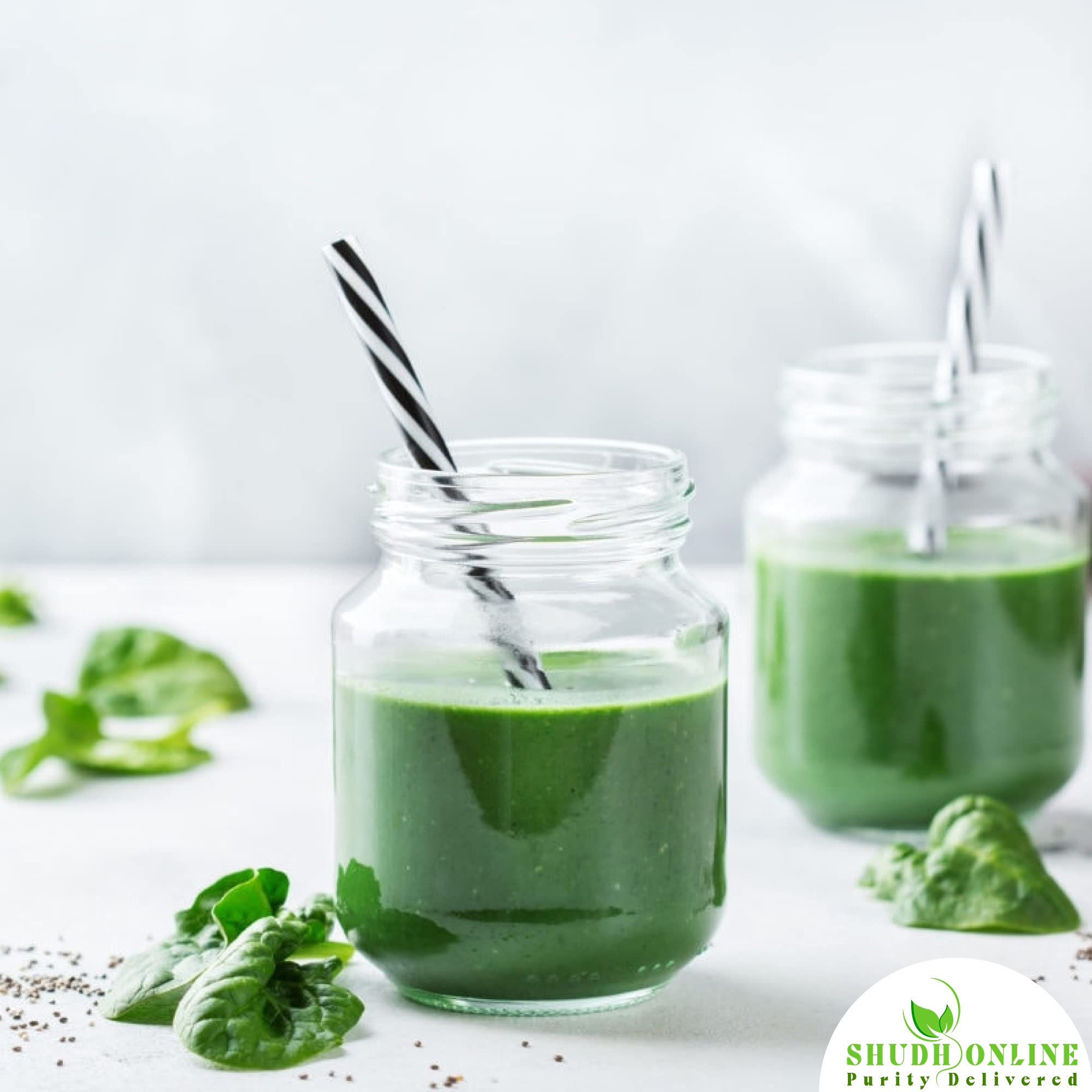 Spirulina is a natural (cyanbacteria) powder that is incredibly high in protein and a good source of antiB-vitamins and other nutrients. When harvested correctly from non-contaminated ponds and bodies of water it is one of the most potent nutrient sources available. It is largely made up of protein and essential amino acids and is typically recommended to vegetarians for its high natural iron content. It is a powerful organic super food is the richest nutrient source energy and one of the best nutrient supplement for vegetarians. It helps in reduction and is rich in protein minerals and -nutrients that keep your body healthy. Shudh Online's Spirulina has a very high concentration of bio-available iron and is excellent during and for those with anemia and will not cause . The proteins and nutrients in Spirulina are very bioavailable and easy to absorb.