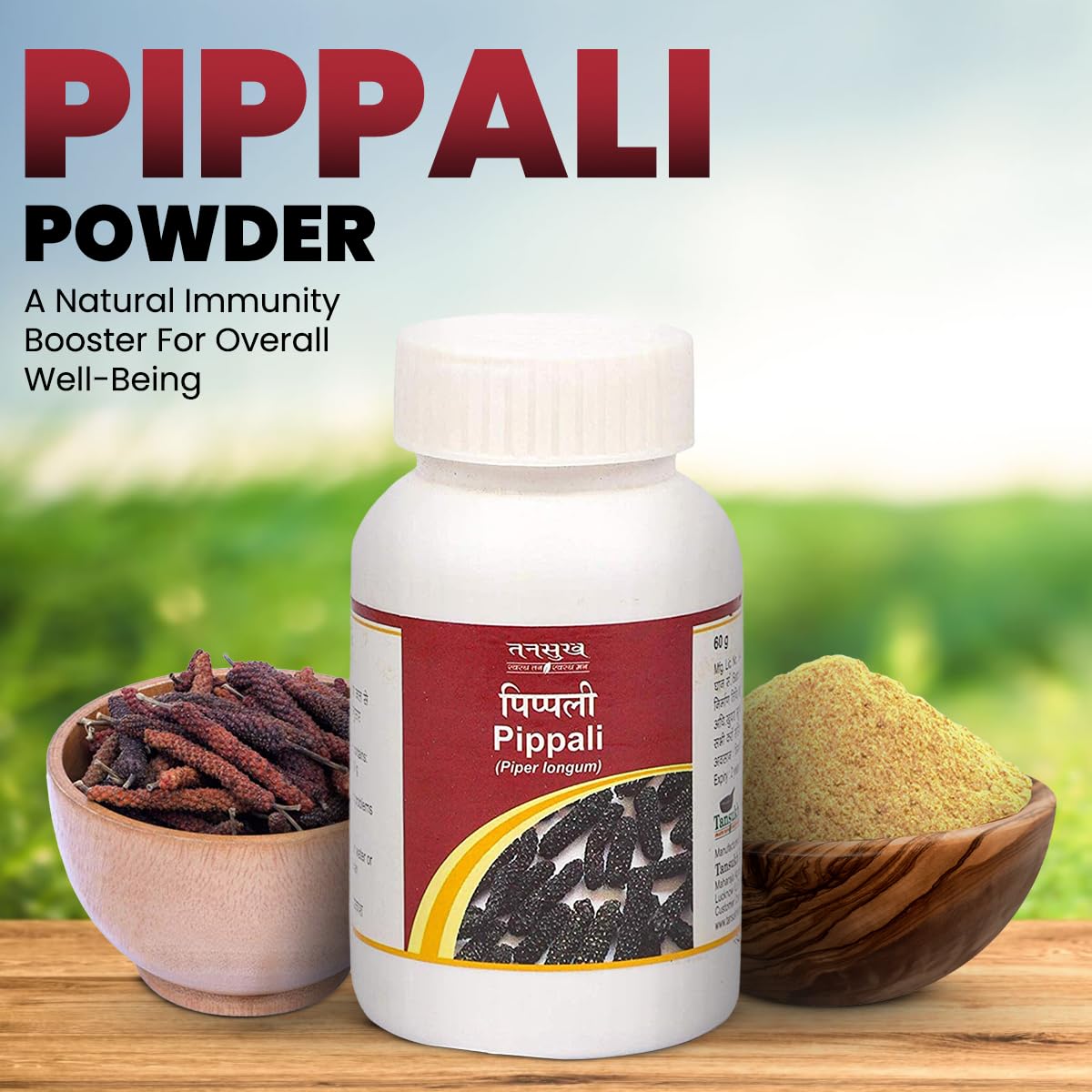 Tansukh Pippali Powder - Pack of 60gm | Ayurvedic Pipali Churna Long Pepper Piper Longum | Authentic Spice from India | Immunity Booster | Ideal for Cooking Seasoning and Ayurvedic Use