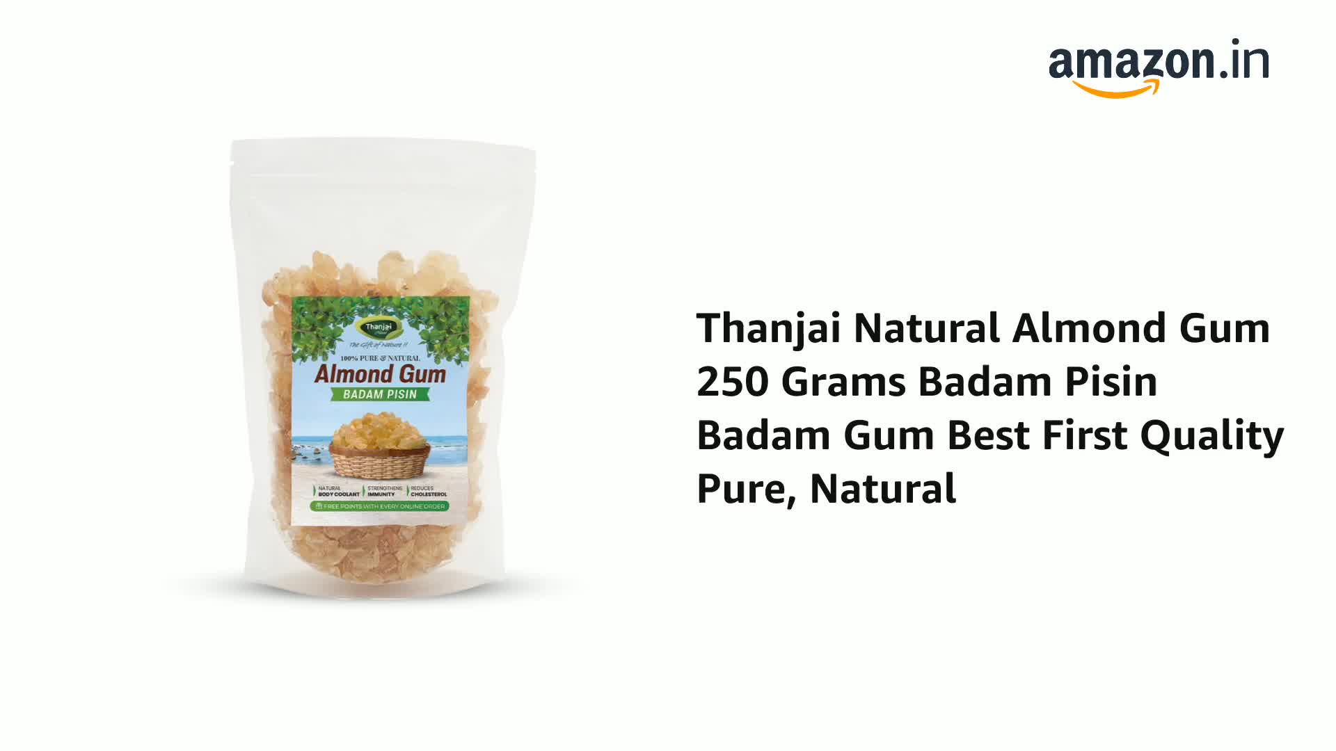Thanjai Natural Almond Gum 250 Grams Gond Katira | Badam Pisin Tragacanth Gum Kathila Gum Astragalus Gummifer Best First Quality Pure, Natural