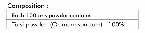 Ingredients: tulsi powder. All our products are made from quality items. We recommend that you read labels warnings and directions of all products before use and not rely solely on the information. Care instruction keep away from the items or products which may cause damage to this product.