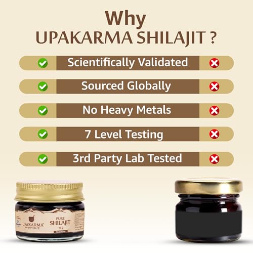 • NABL CERTIFIED LAB TESTED - UPAKARMA pure Shilajit resin ensures that you get the best quality Shilajit that is tested by NABL labs and is backed by R&D and 7 Level Quality Checks.
