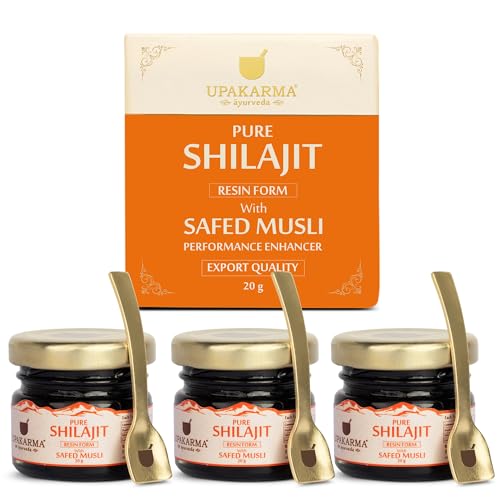 UPAKARMA Shilajit Resin with Safed Musli 20g | 300mg/serving | For Men to Boost Physical Performance, Power, Stamina and Strength | 100% Ayurvedic | Lab Tested | 66 Servings | Pack of 3