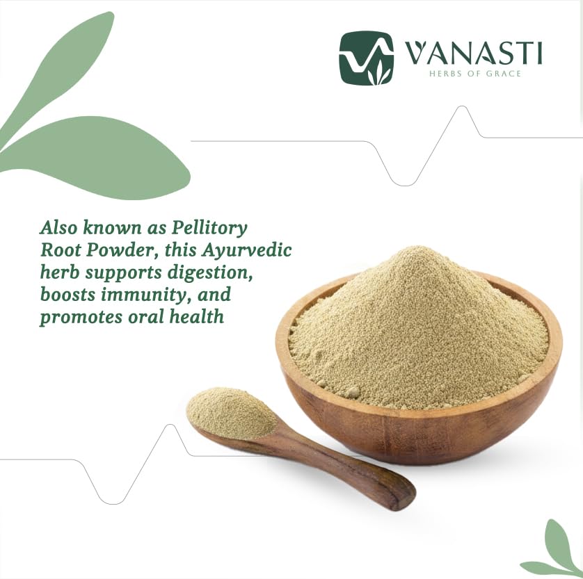 Akarkara Powder is made from the dried roots of the Anacyclus pyrethrum plant, also called Pellitory Root. This herb grows in parts of Europe, North Africa, and Asia and has daisy-like flowers with white petals and yellow centers. The roots are thick, brown, and known for their strong aroma and sharp taste. The powder is light brown and mixes easily into herbal or spice blends. It contains small amounts of natural minerals. Akarkara is mainly used for its bold, earthy flavor.