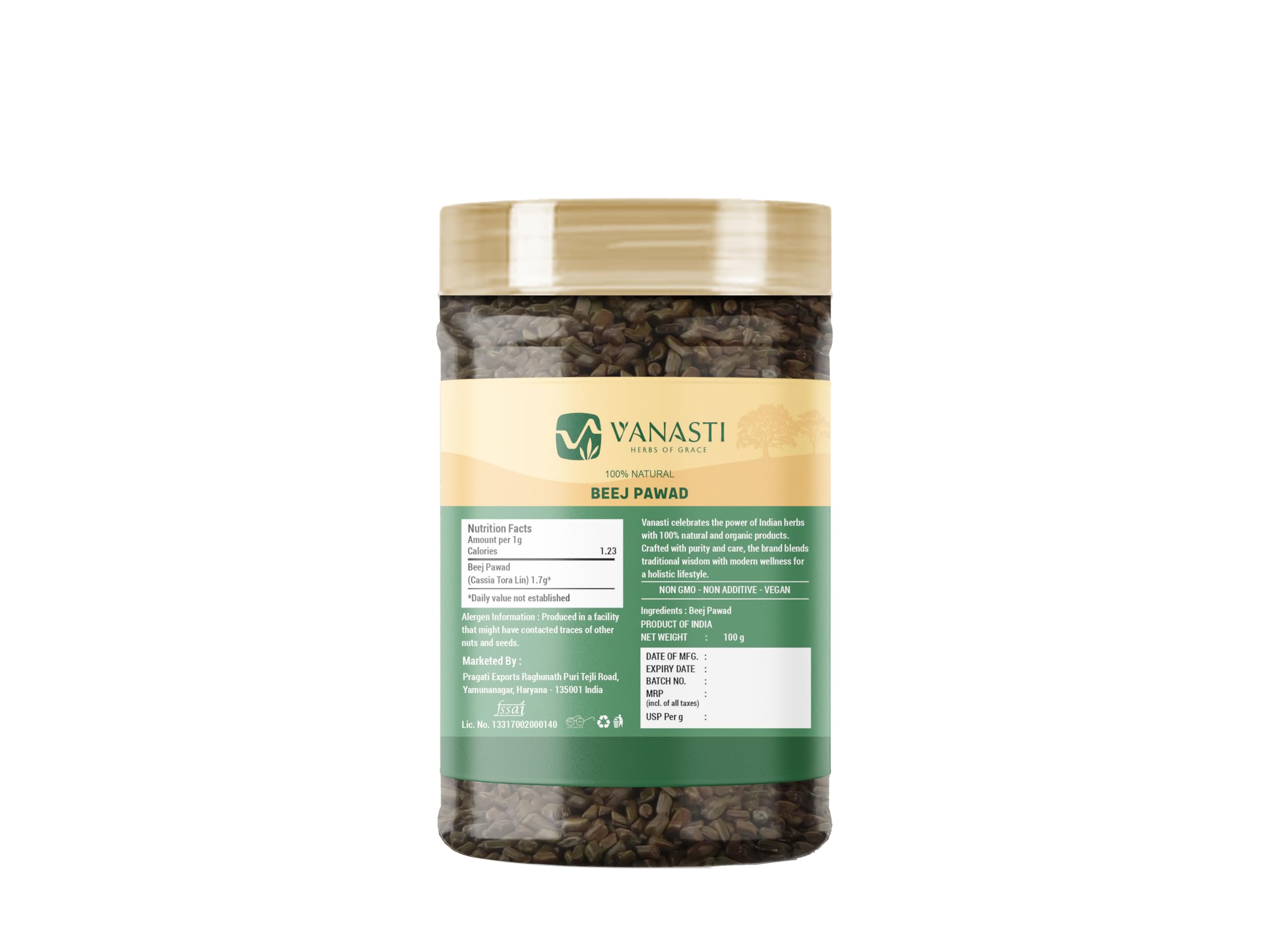 Beej Pawad, also known as Cassia Tora Linn., grows naturally in tropical regions, especially across India and Southeast Asia. The plant produces small, dark brown seeds that are smooth and slightly angular in shape. Its bright yellow flowers and curved seed pods make it easy to spot in the wild. Traditionally, Beej Pawad seeds are used in various herbal blends and local preparations. The seeds are a natural source of plant fiber and contain a modest amount of protein, along with key plant compounds like flavonoids.
