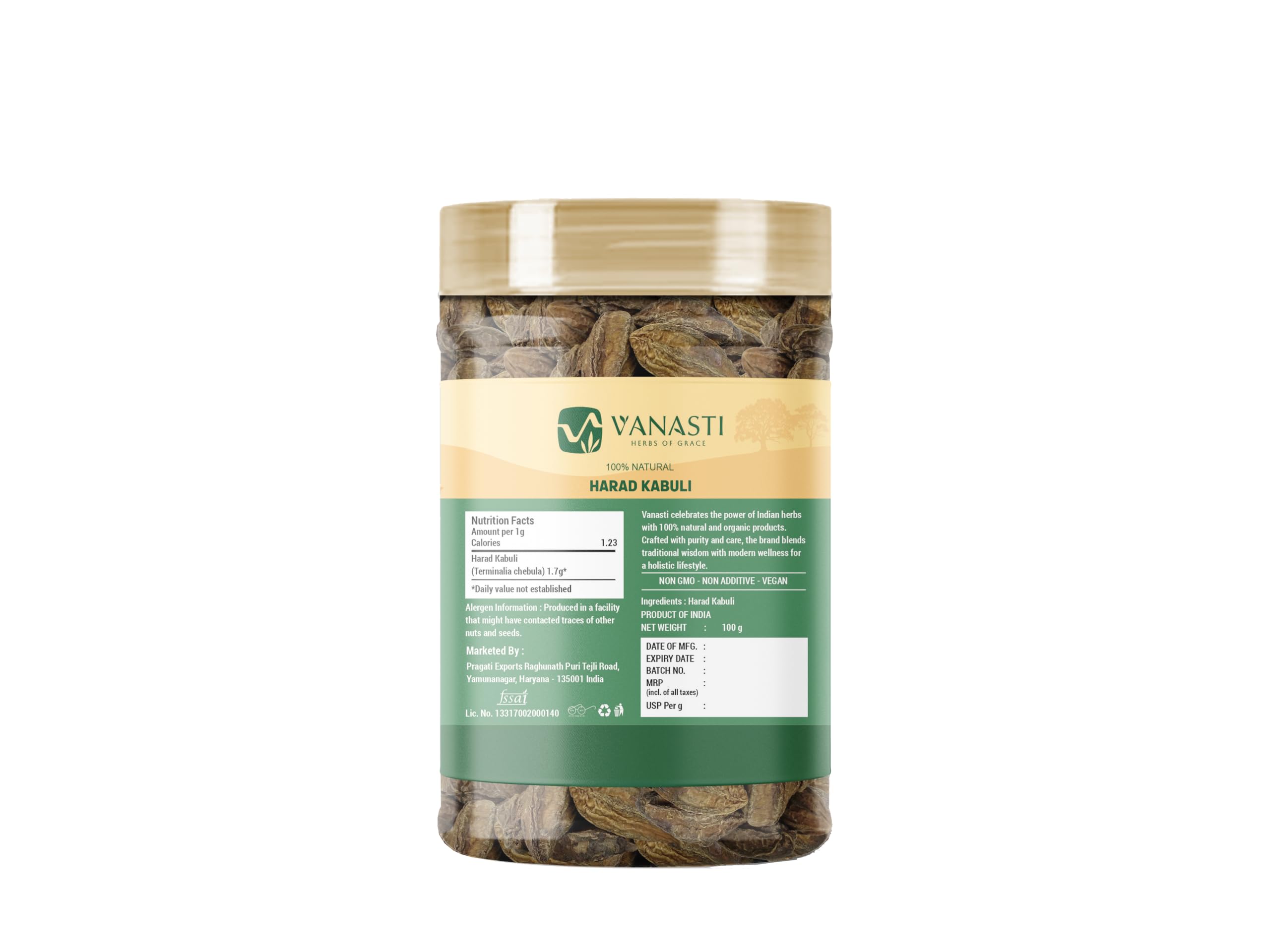 Harad Kabuli, also called Harar Kabul, is the dried fruit of the Terminalia chebula tree, native to South and Southeast Asia. The fruit is oval-shaped, greenish-yellow to brown when dried, and has a firm, wrinkled surface. Harad Kabuli is one of several types of this fruit and has been used in traditional systems like Ayurveda and Unani for generations.It is usually ground into powder and added to herbal mixes. The fruit naturally contains plant elements like tannins, chebulic acid, and vitamin C, which give it a slightly bitter taste and dense texture. Harad Kabuli has held a long-standing place in traditional routines and regional wellness customs.