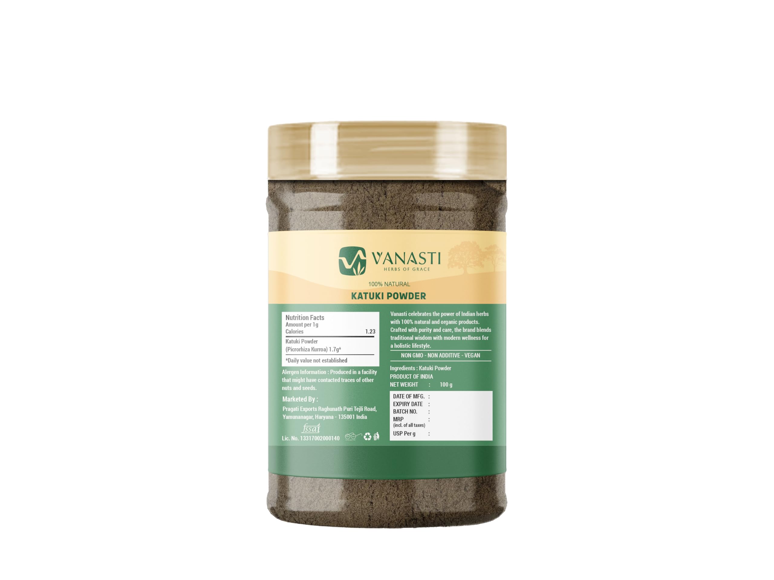 Kutki (Katuki Powder, Picrorhiza kurroa) is a small Himalayan herb with slender roots and pale blue or purple flowers. Often found as dried root powder or tablets, it contains iridoid glycosides, flavonoids, and phenolic acids, and is known for its bitter taste and traditional use in botanical mixtures.