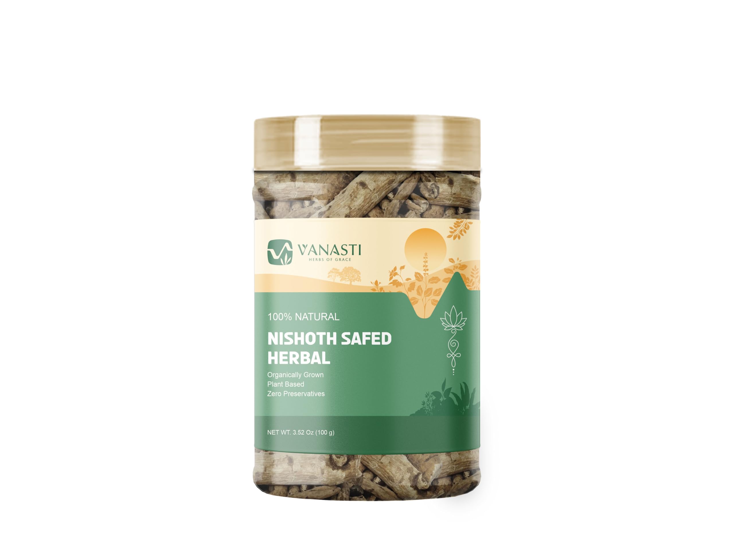 Nishoth Safed is particularly effective in balancing Kapha and Pitta doshas thereby enhancing overall well-being.Regular use of Nishoth Safed can help enhance immunity and build resistance against infections.It helps in detoxifying the body by eliminating toxins (Ama) and purifying the blood promoting overall health.
