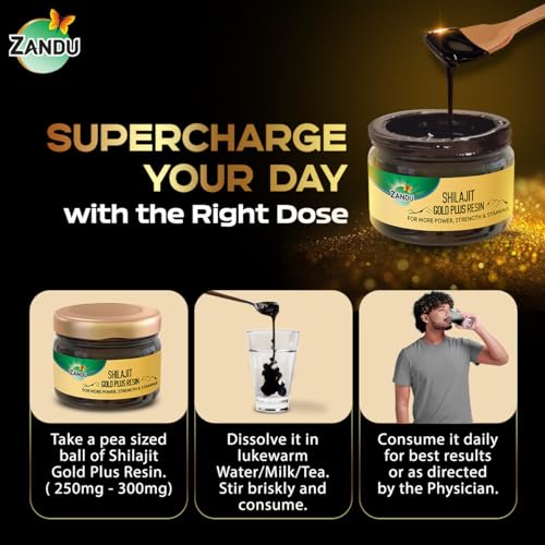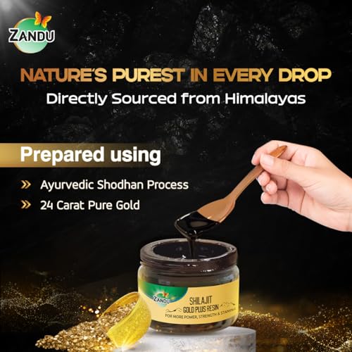 Zandu introduces Shilajit Gold Plus Resin an Advanced Ayurvedic formula infused with Pure Himalayan Shilajit Gold Bhasma (Prepared from 24K Gold) Kesar and 11 powerful Ayurvedic ingredients including Ashwagandha Gokshur Safed Musli Akarakarabha Yashad Bhasma and Jatiphala. Crafted from pure Shilajit resin extracted from the Himalayan Mountains renowned for its restorative properties. Shilajit used in this formulation is purified using Ayurvedic Shodhan Process for better efficacy. Moreover Pure Shilajit contains fulvic acid 80+ minerals and rare essential elements that offer superior benefits. Rooted in Zandu's legacy of over 110 years in Ayurveda we meticulously source the finest ingredients and employ stringent quality control measures ensuring a product that authentically embodies the essence of Ayurveda.