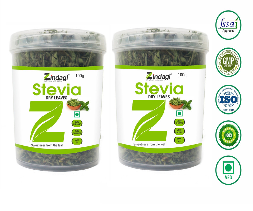 Zindagi Stevia is a natural sweetener, comes in various forms with proven health benefits. Stevia leaf is the most natural form to consume. People with the habit of drinking Luke-warm water can use by add-on leaves to get the direct benefit of the stevia plant (Stevia Rebaudiana). Natural Stevia sugar-free helps you to reduce weight and stay fit and active. By Adding stevia leaves (sweet leaf) in your daily routine shall show you outcome in no time. Suitable for sugar-sensitive people, Stevia extract is 300 times sweeter than regular sugar. Besides regulating blood sugar and lowering down sugar levels, stevia sugar also curbs tobacco and alcohol cravings. Without any change in taste, Stevia gives the right amount of vitamins and minerals, like vitamin C and A, rutin, zinc, magnesium and iron. Stevia Dry Leaves are much better than Stevia Tablets. Stevia sweeter is better than Splenda & any other artificial Sugar-Free sweeteners. Zindagi Stevia products are now available in Stevia Liquid, Stevia powder, Stevia white powder & Stevia sachets.