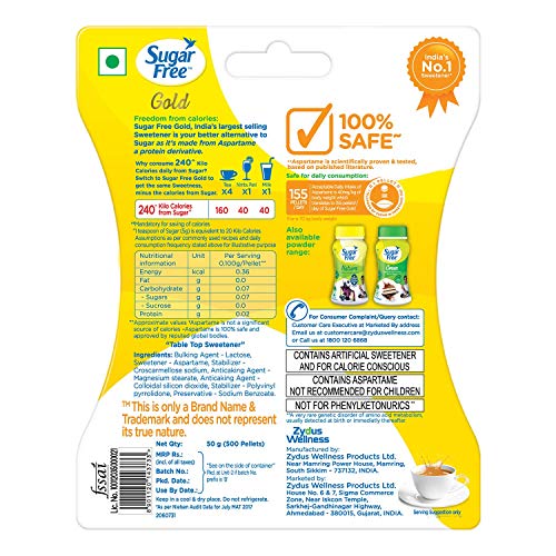 500 Tablets Sugar Free Gold is Equal to Zero Calories Sweetener Low Calorie Sugar Substitute 500 Pellets (Pack of 2)