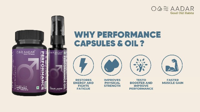 Aadar Performance Oil & Capsule Combo Pack|Ayurvedic Strength,Energy Booster for Men|Muscle Growth|Restores energy|Safed Musli,Ashwagandha ,Shilajit,Gokshura|60 Capsules & 30ml Oil,140 grams