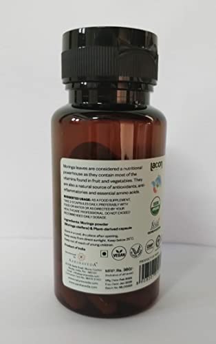 Organic Moringa capsule contains Organic leaf powder of Moringa oliefera (Sahjan). The powder is produced by harvesting drying then milling the leaves of Moringa oleifera. The powder is extremely rich in nutrients. It contains 90+ nutrients and 40+ antioxidants. It is an excellent source of vitamin A vitamin C iron protein fibre calcium magnesium and potassium.