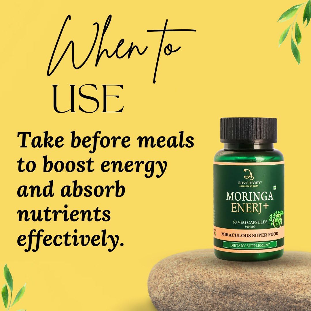 Moringa(Moringa Oleifera) a very native species of South India is a superfood due to its multifunctional properties. The leaves of Moringa helps to improve the overall wellbeing by enhancing iron absorption through improved digestion and nutritional uptake. Each capsule is exclusively packed with 40+ powerful anti-oxidants and 30+ anti-inflammatory agents.