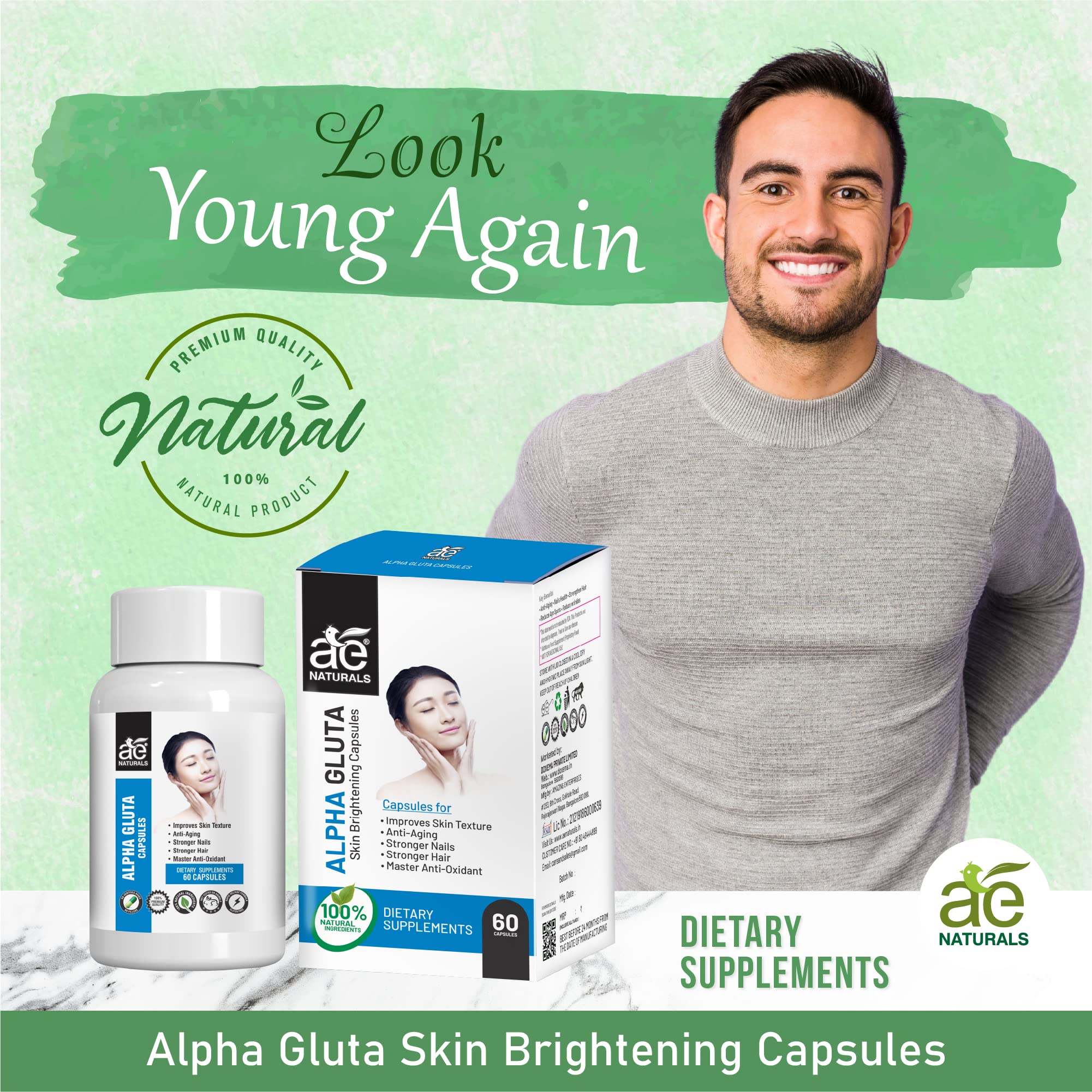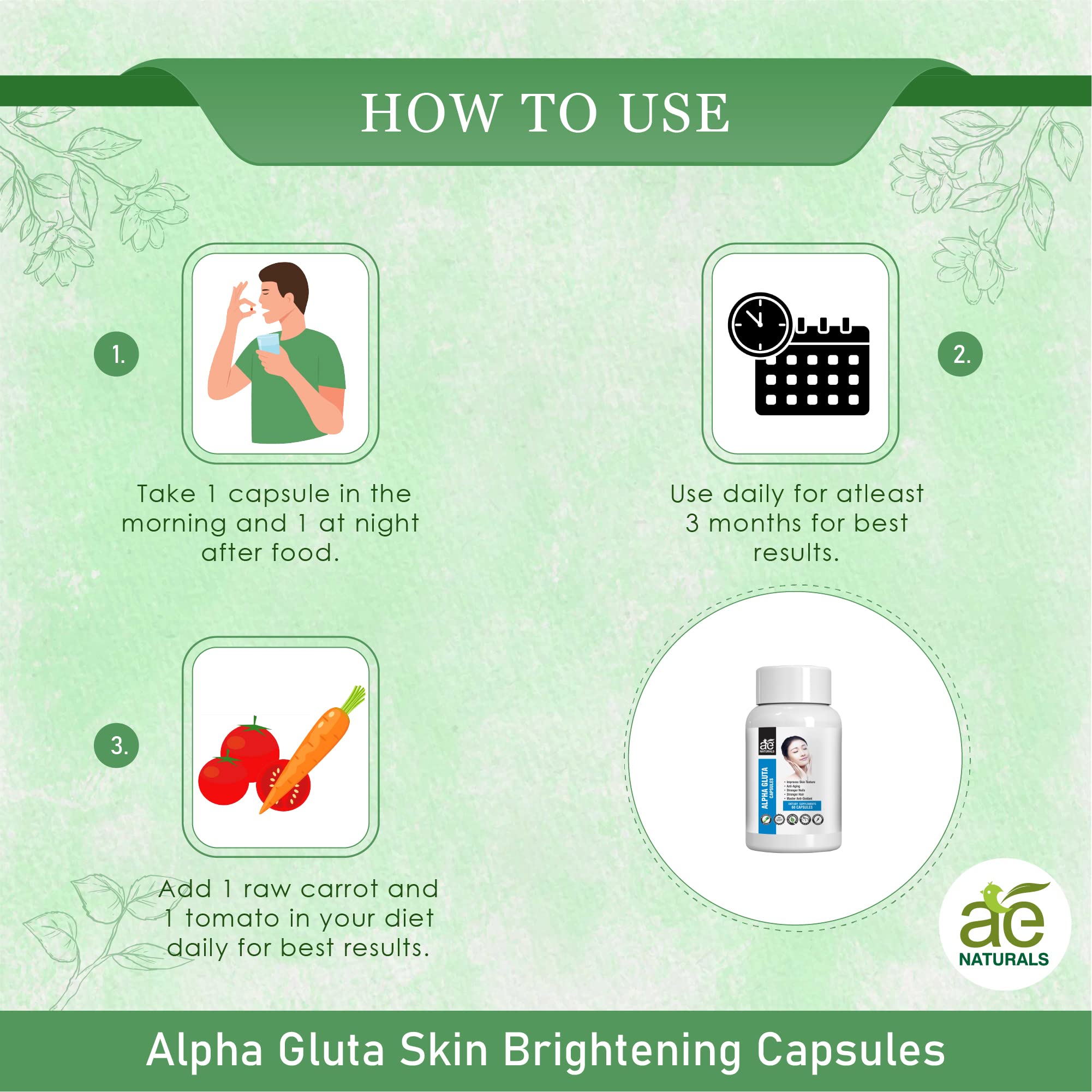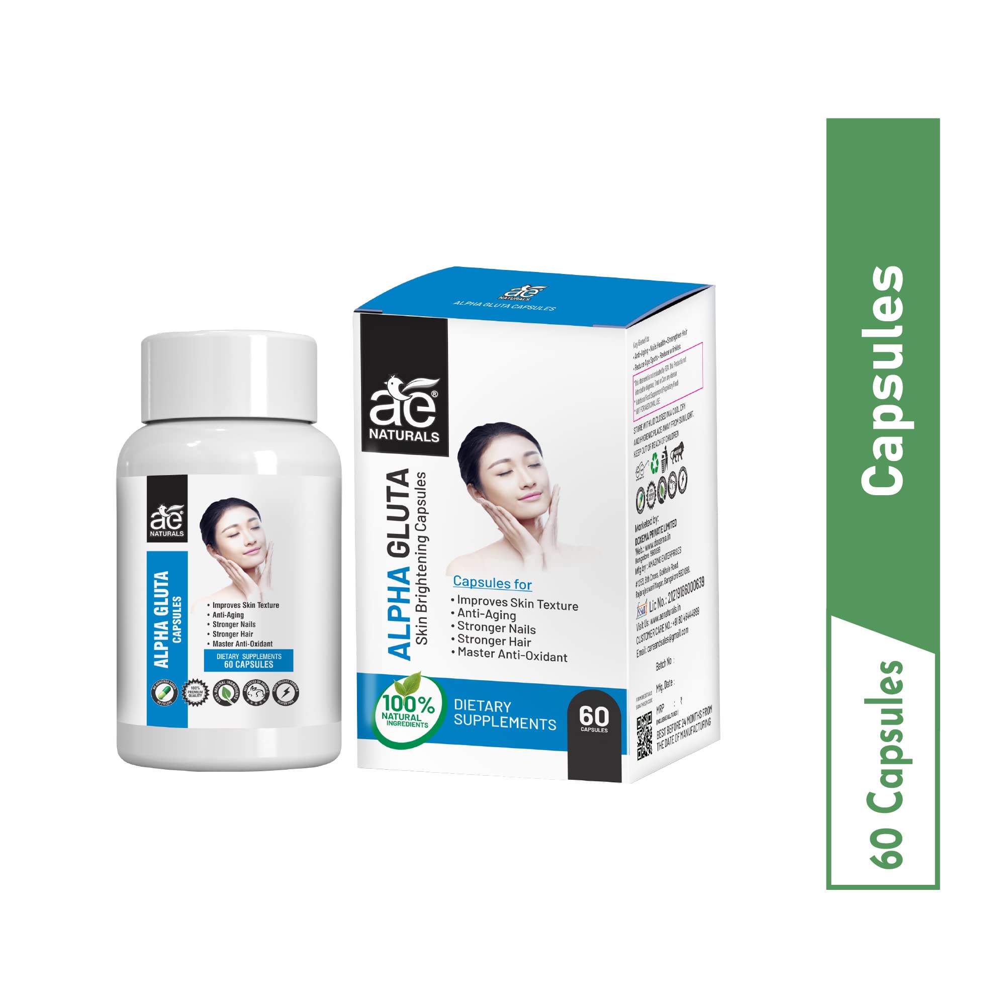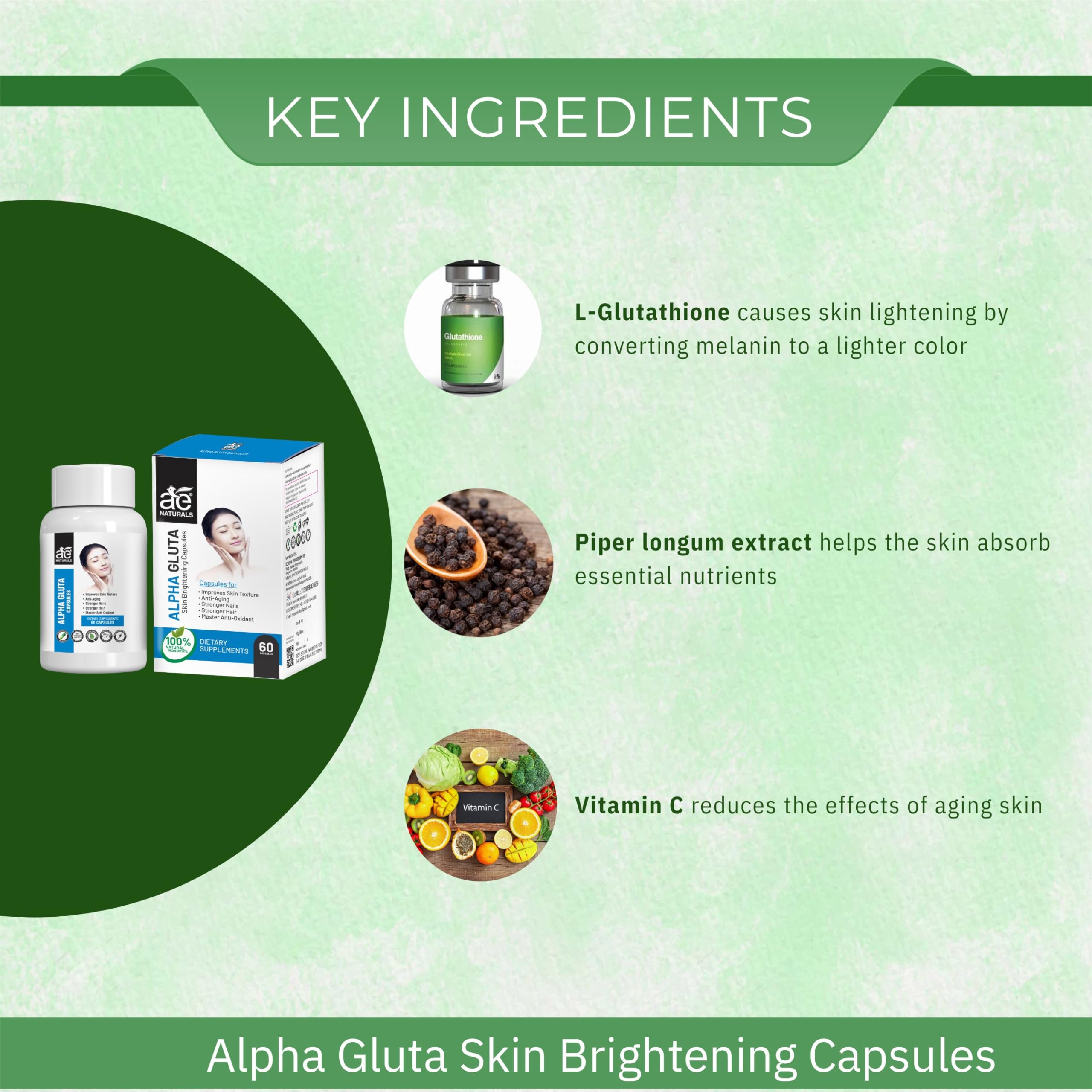 AE Naturals Alpha Gluta Skin Brightening Capsules - Pack of 60 Capsules | Nourishing Skin Care Supplement with Anti-Wrinkle Benefits