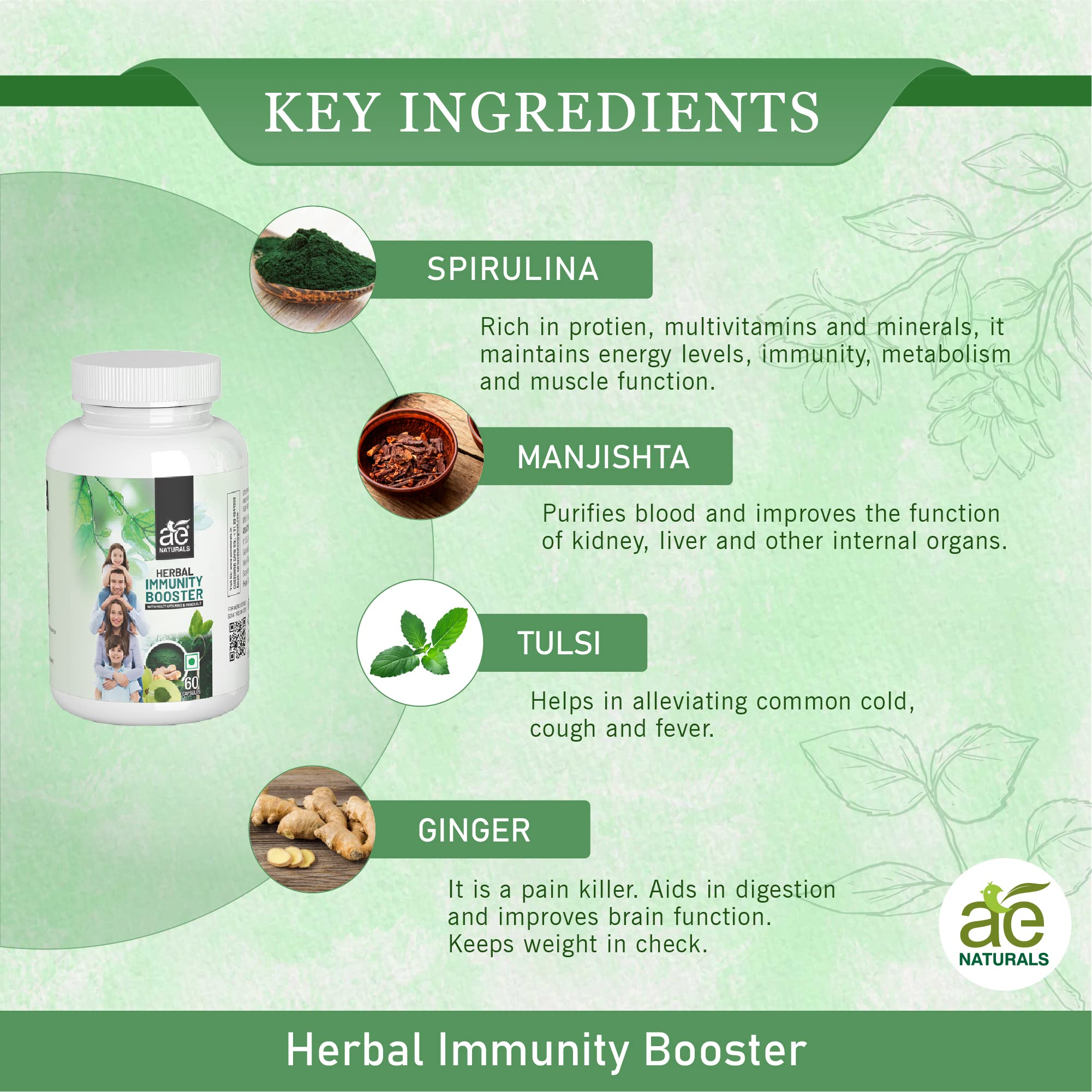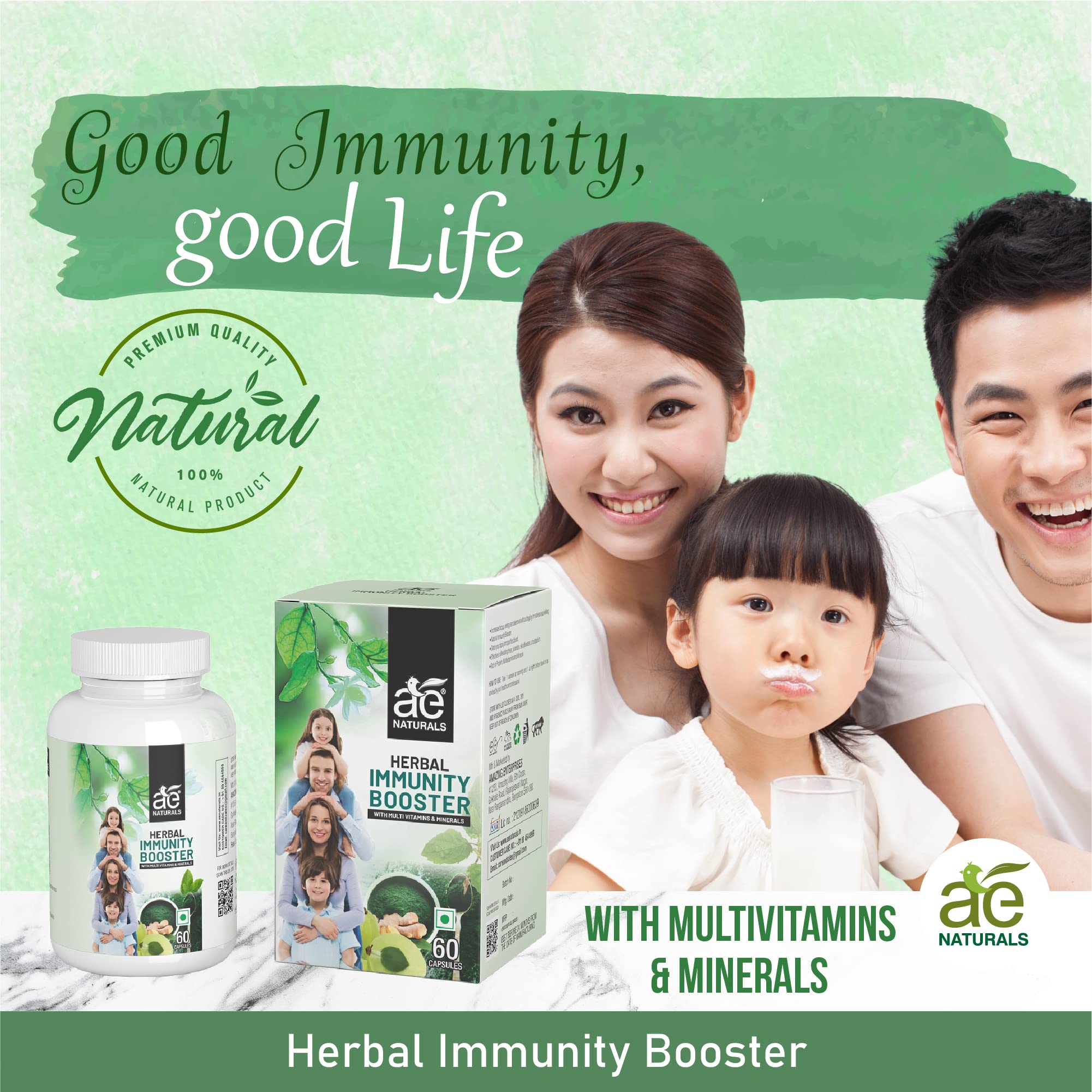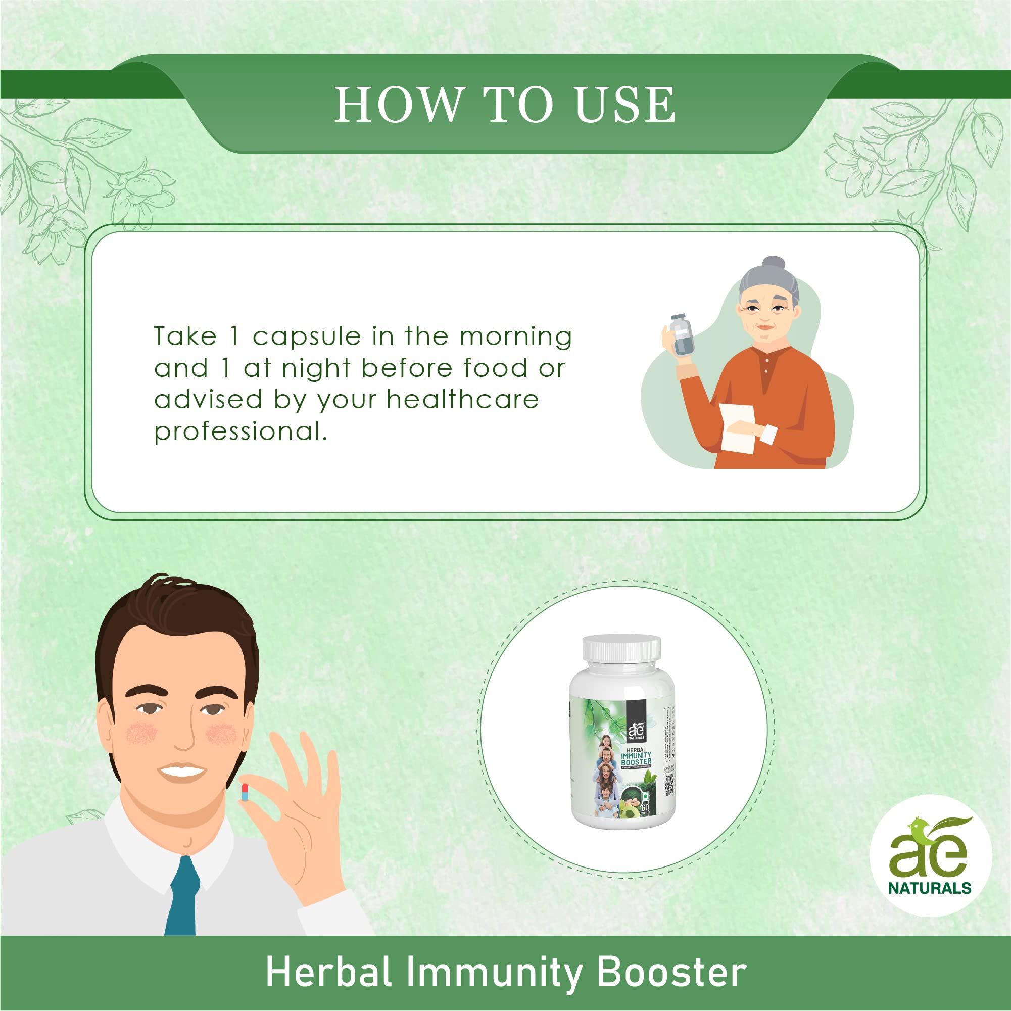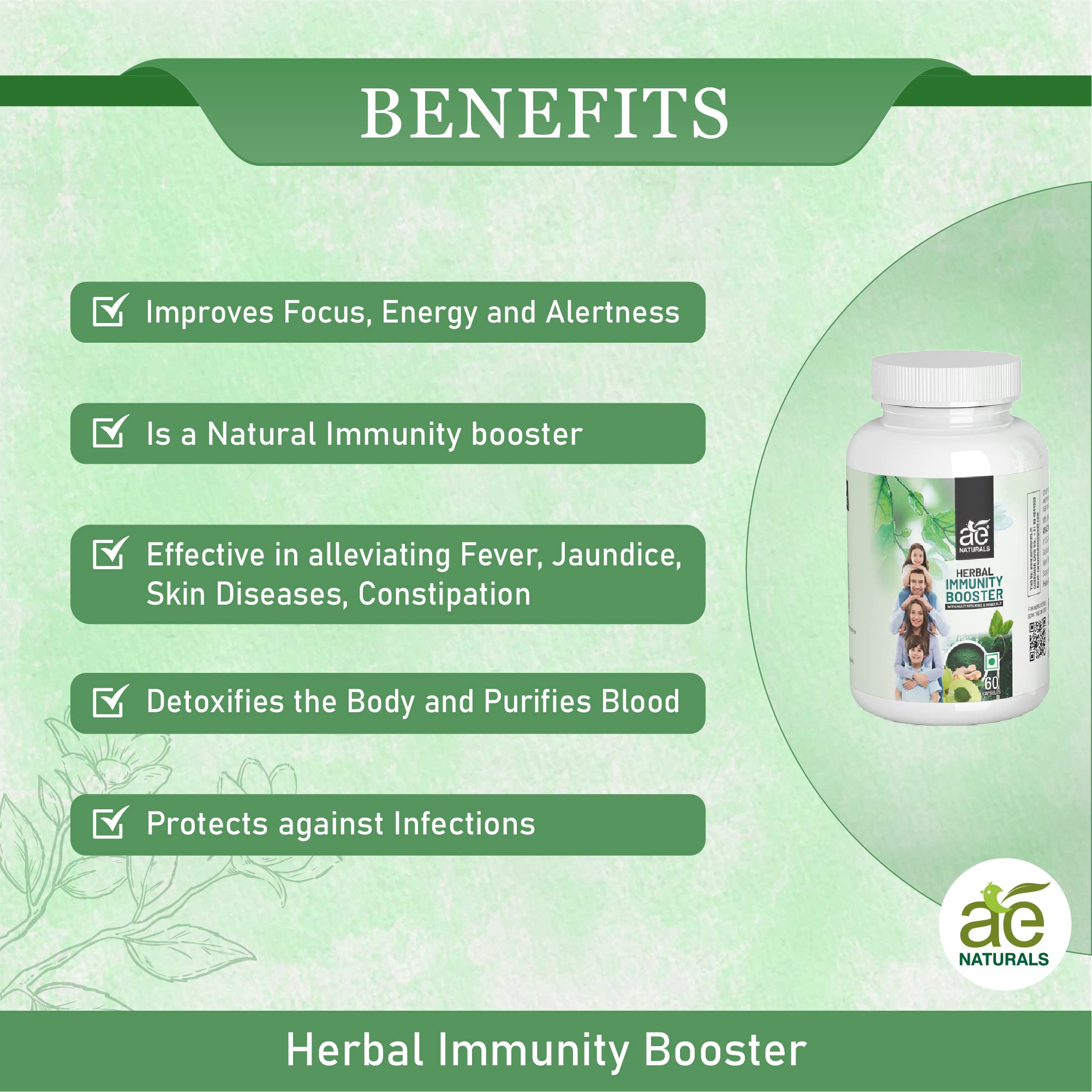 HomeHealth & PersonalDiet & NutritionHealth SupplementsAE NATURALS Capsules Herbal Immunity Booster With Multi-Vitamins And Minerals Increases Focus Energy And Alertness Without Tingling Or Restlessness Feeling 60 Capsules