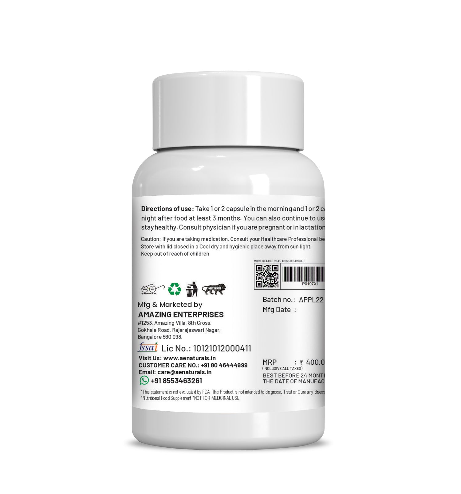 Ae Naturals Papaya Leaf Extract CapsulesDirections For Use:Take 2 Capsules Morning and 2 at Night after Food. Use At Least 3 Months To Get Good ResultsLegal Disclaimer: Statements regarding dietary supplements have not been evaluated by the FDA.Note: Product images are for illustrative purposes only. Images/packaging/ labels may vary from time to time due to changes made by the manufacturer's manufacturing batch and location. The product descriptio