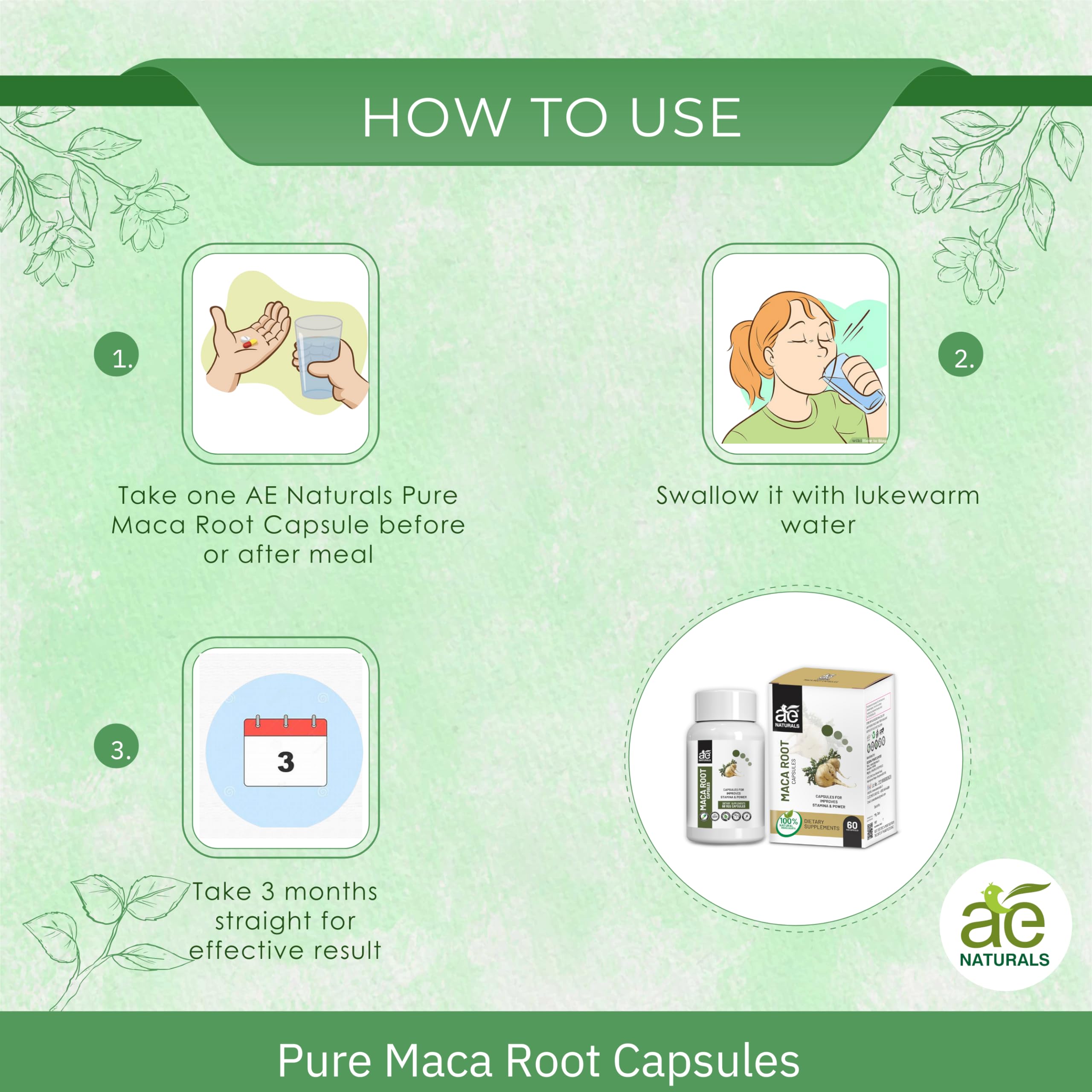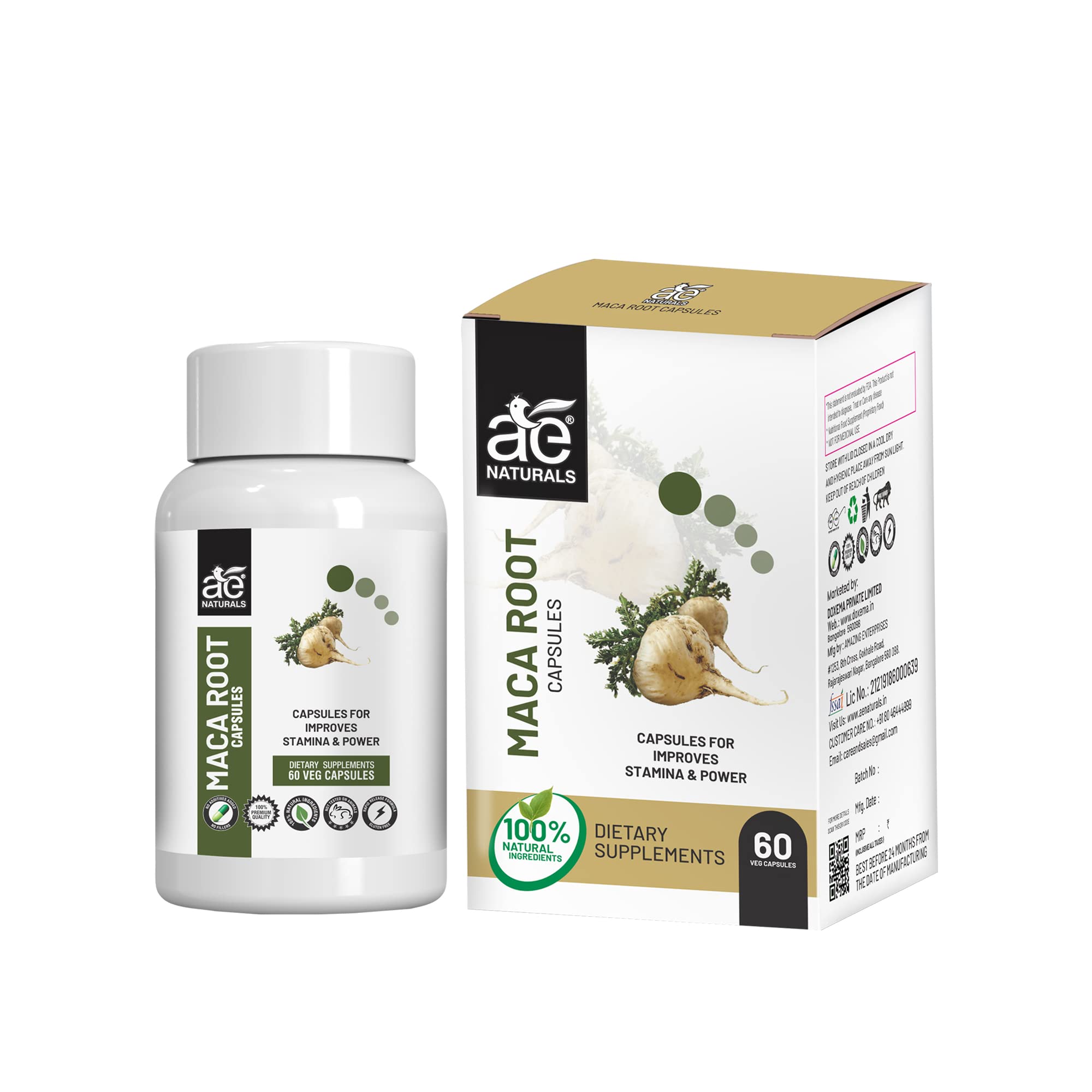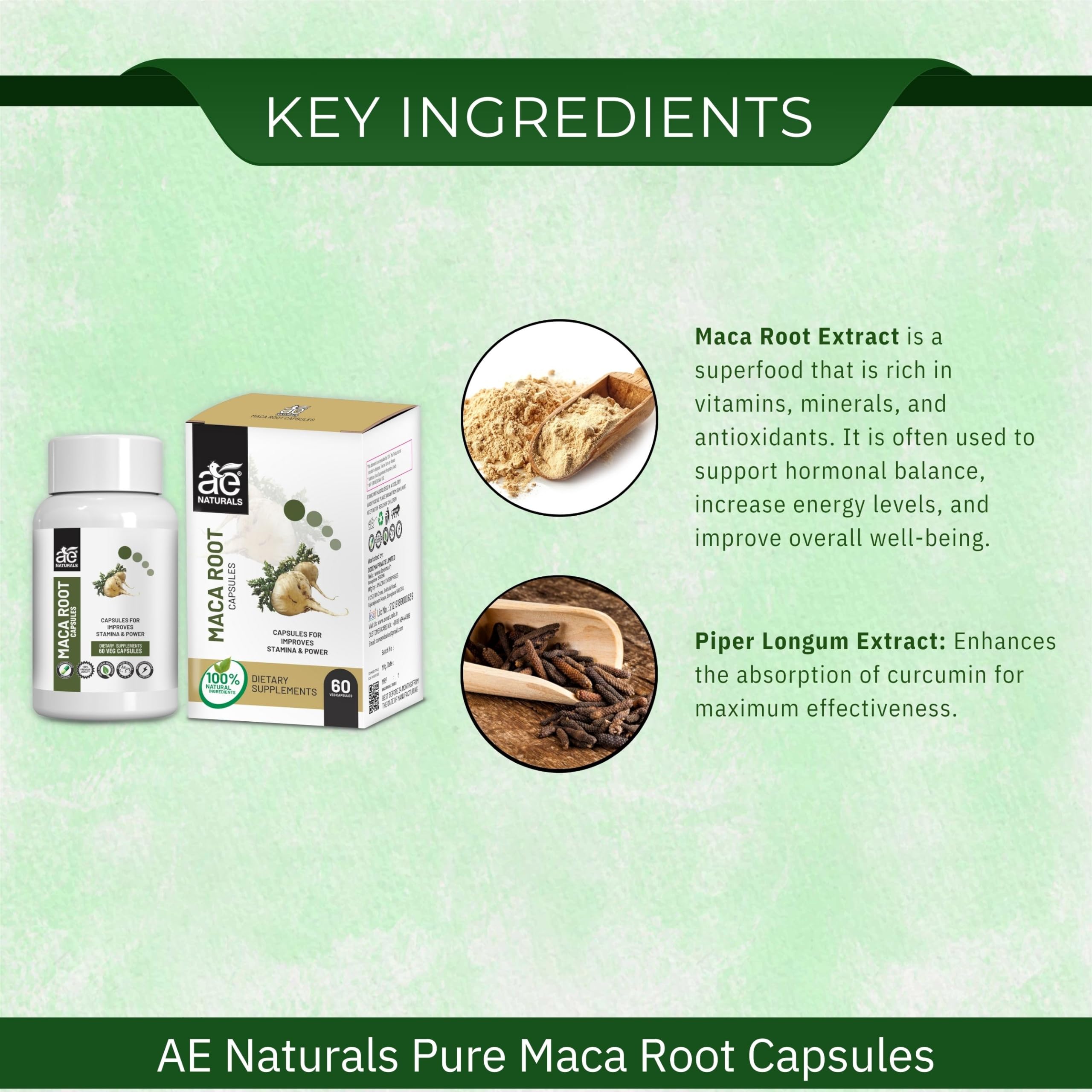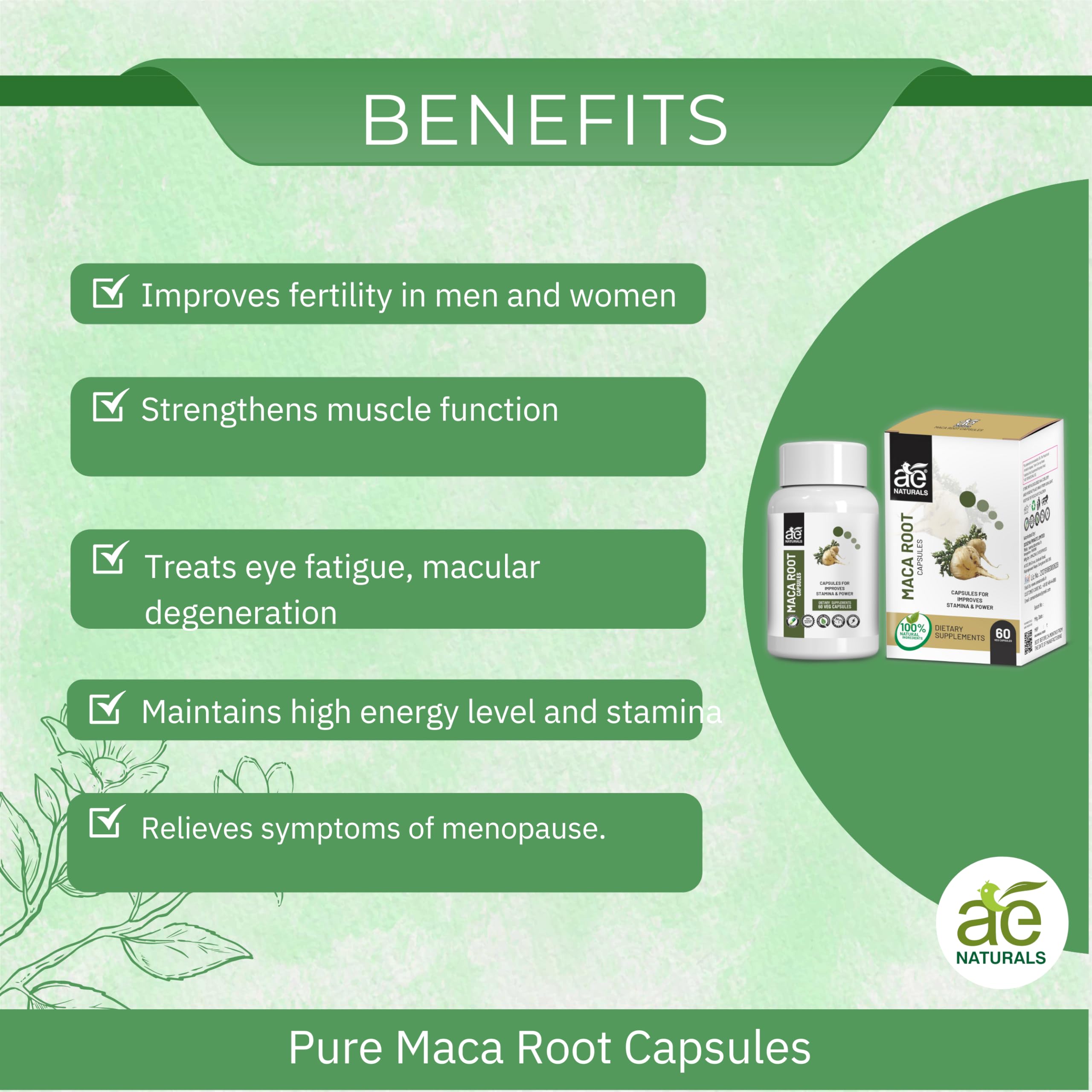 Experience the natural power of AE Naturals Pure Maca Root Capsules a dietary supplement designed to increase energy stamina and fertility. Maca root supports hormonal balance in both men and women promoting a healthy reproductive system. Packed with essential minerals like copper manganese iron and zinc these capsules enhance performance levels. Enjoy the benefits of improved fertility strengthened muscle function elevated energy and stamina enhanced mood and optimized brain function. AE Naturals Pure Maca Root Capsules are a safe and natural choice for overall well-being.