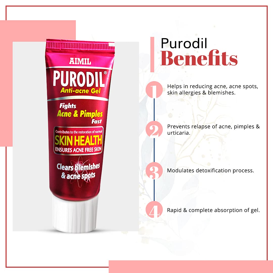 AIMIL Purodil Gel - 20gm (Pack of 2) | For Pimple and Acne free Skin with α Mangostin Neem & Manjishtha | Antiallergic & Anti-infective